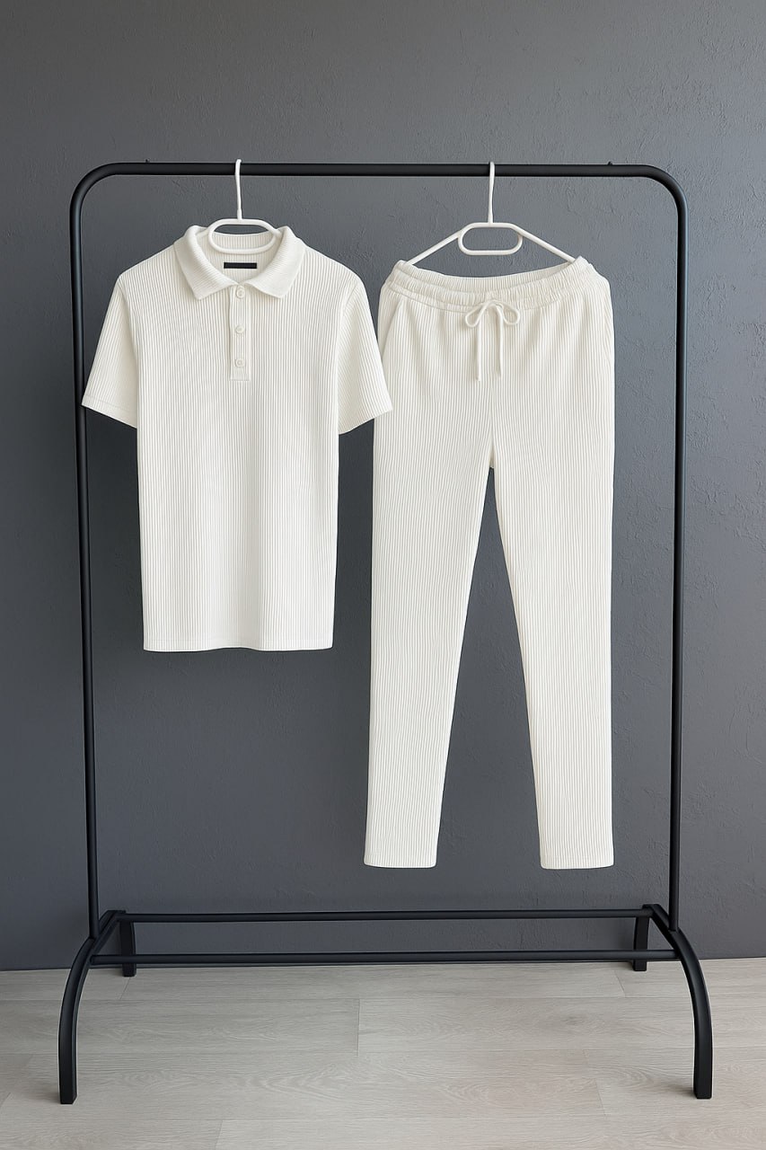 Чоловічий Базовий Літній Білий Костюм в Рубчик – Футболка Поло + Штани