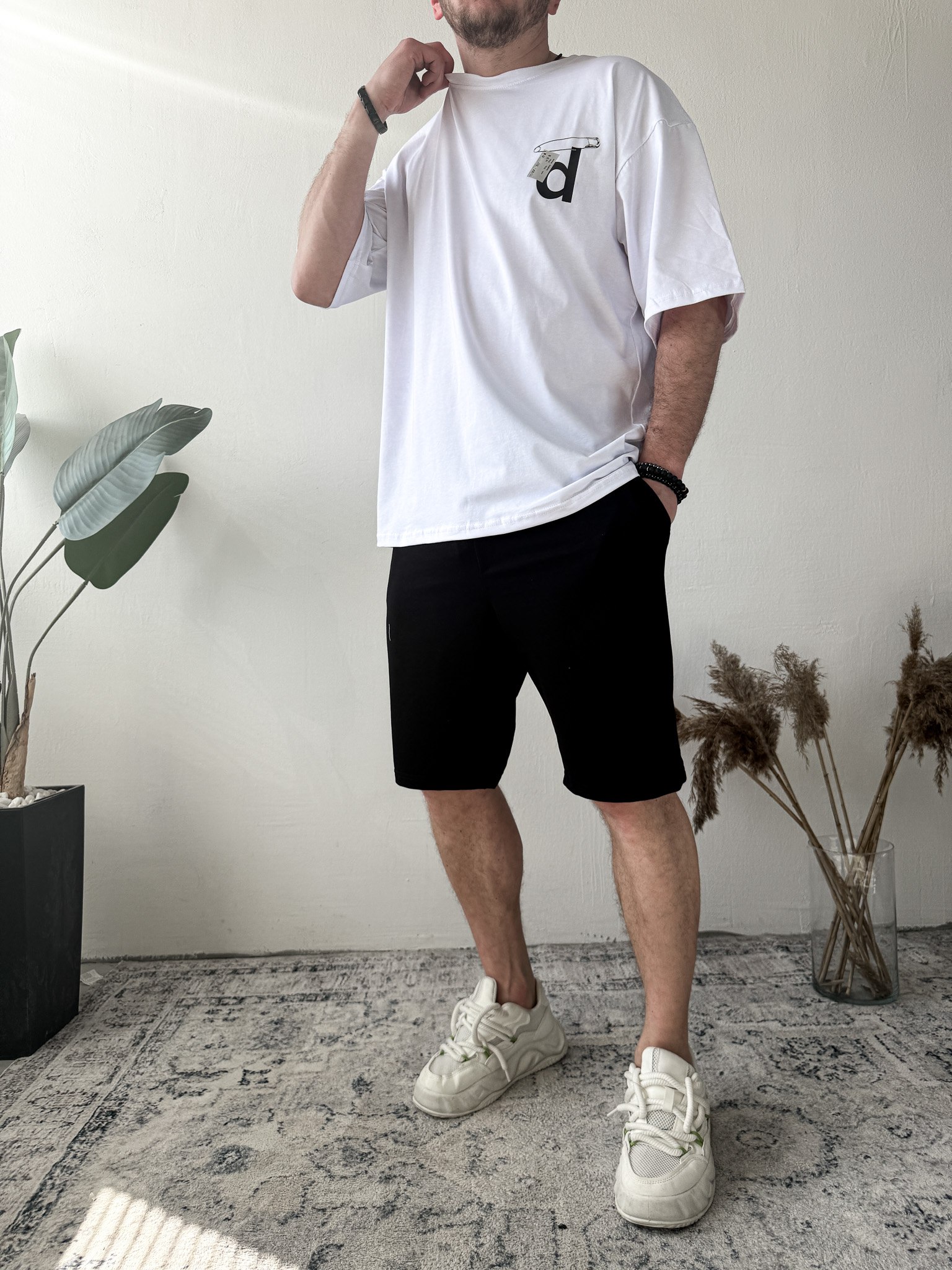 Чоловічий Базовий Літній Костюм Вільного Крою – Комплект Біла Футболка та Чорні Шорти