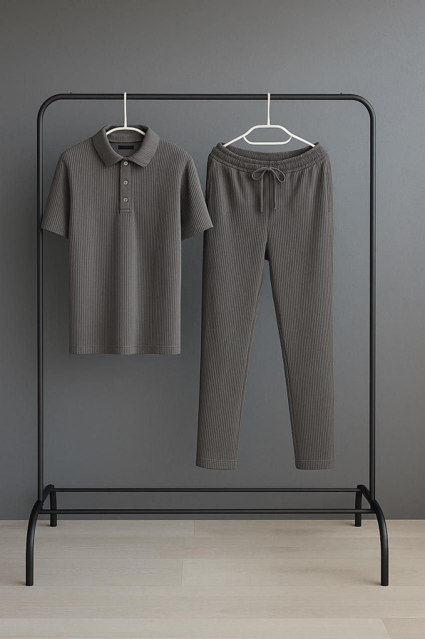 Чоловічий Базовий Літній Сірий Костюм в Рубчик – Футболка Поло + Штани