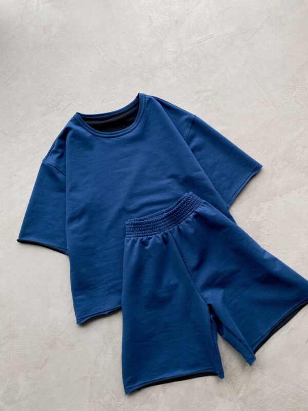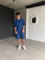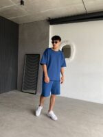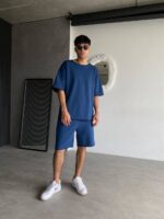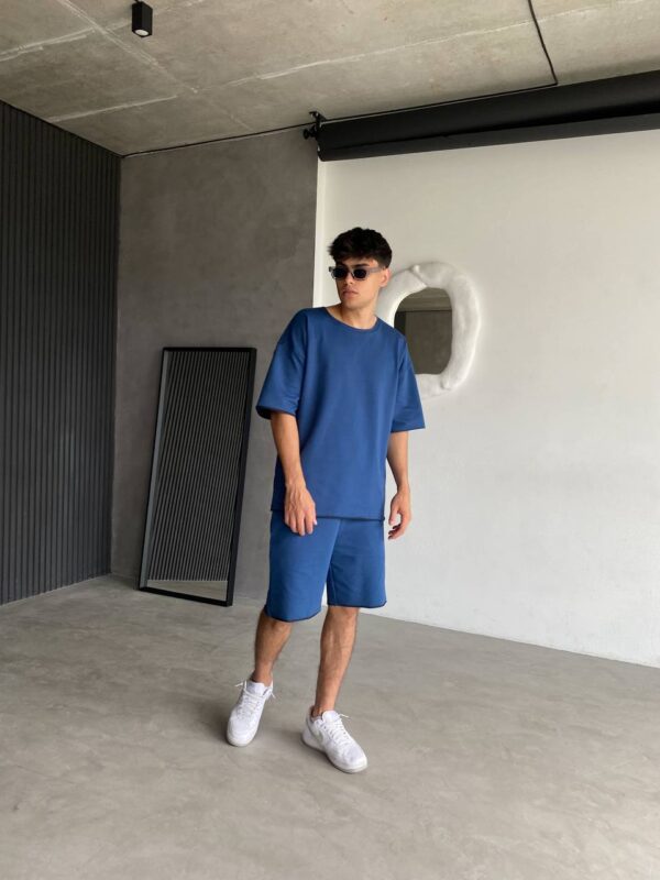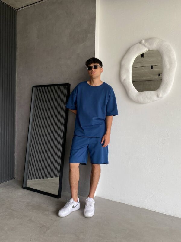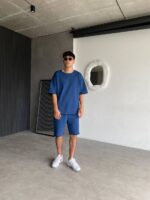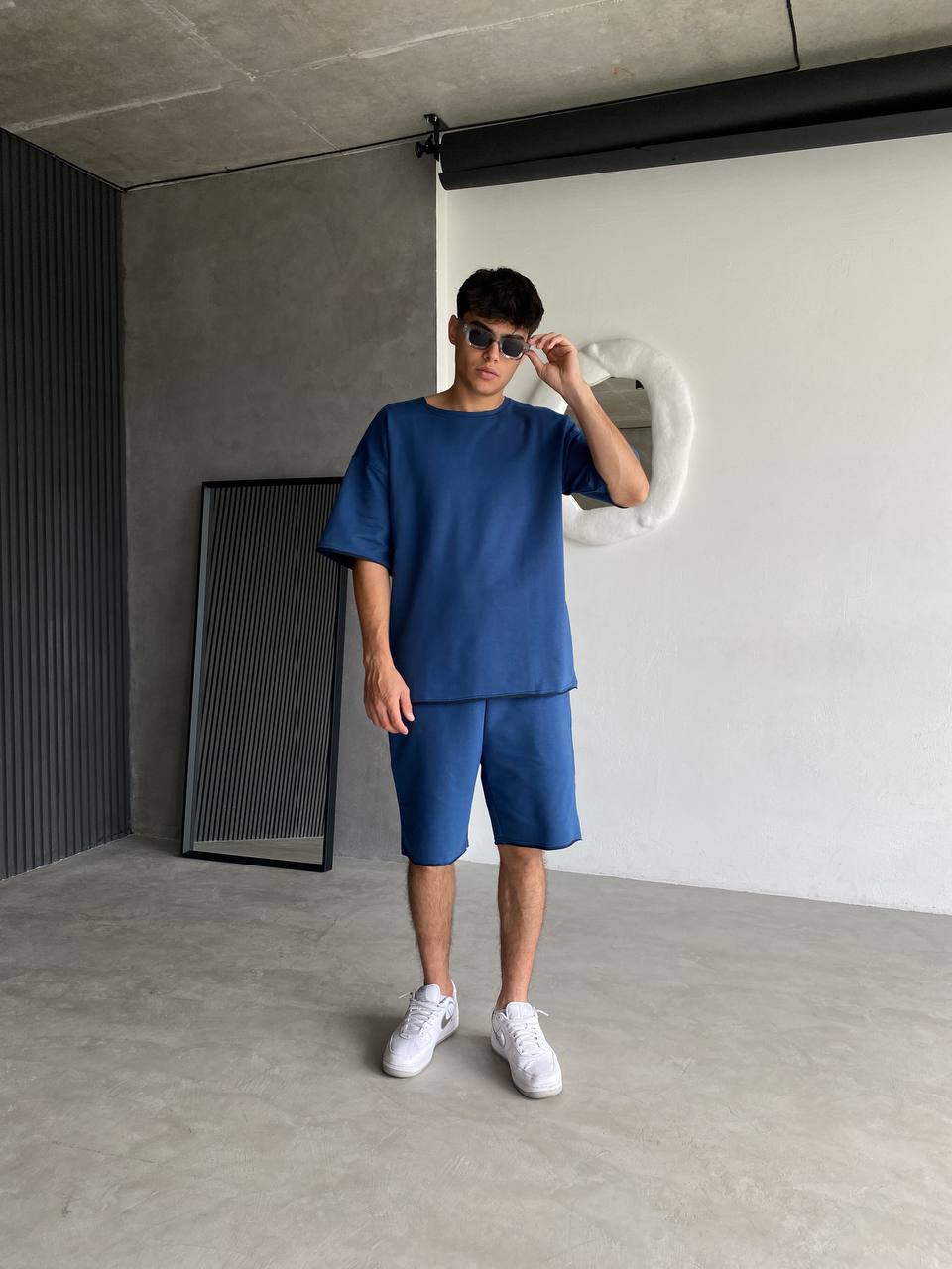 Чоловічий Базовий Літній Синій Комплект Двонитка Оверсайз – Футболка та Шорти