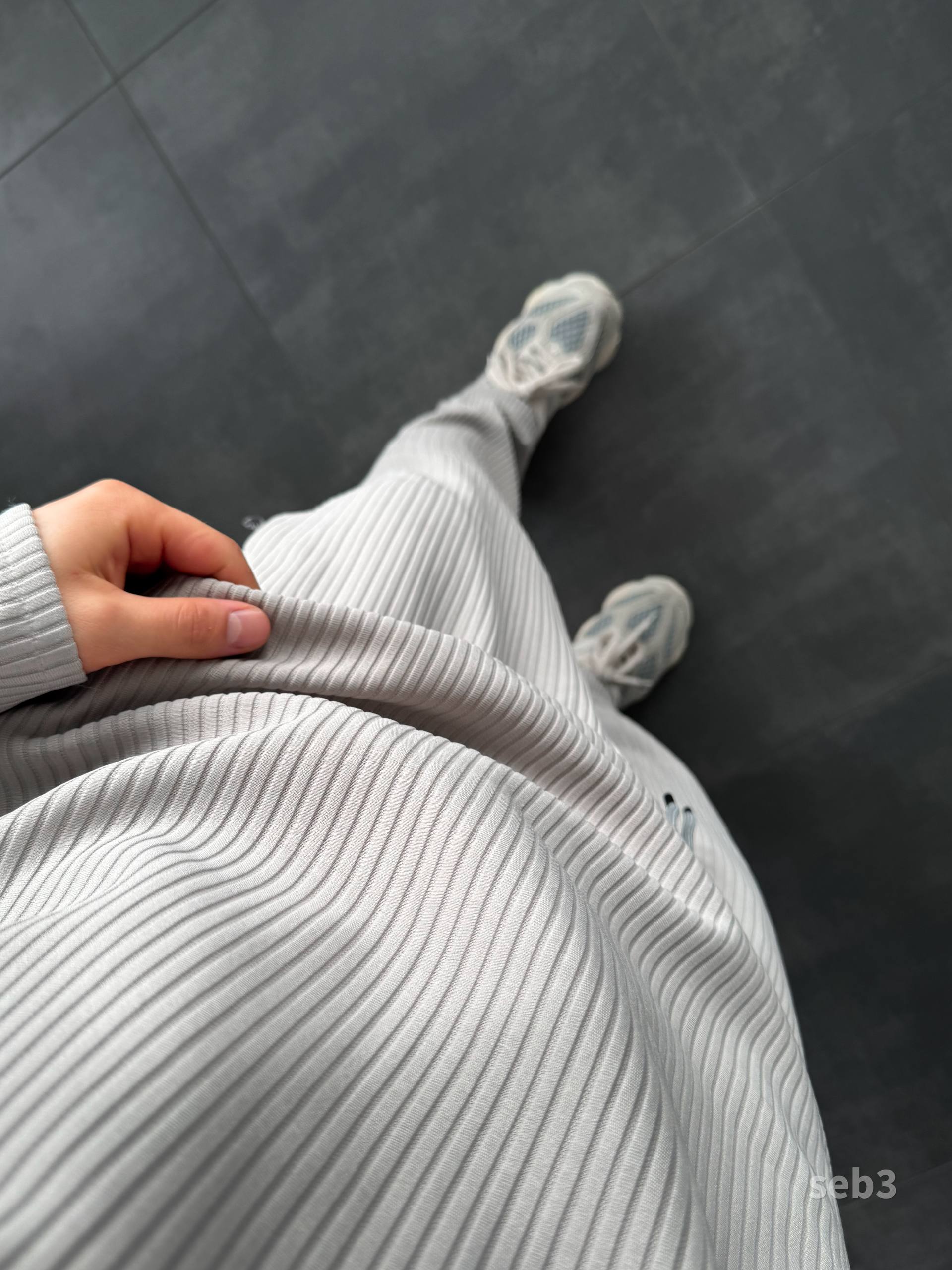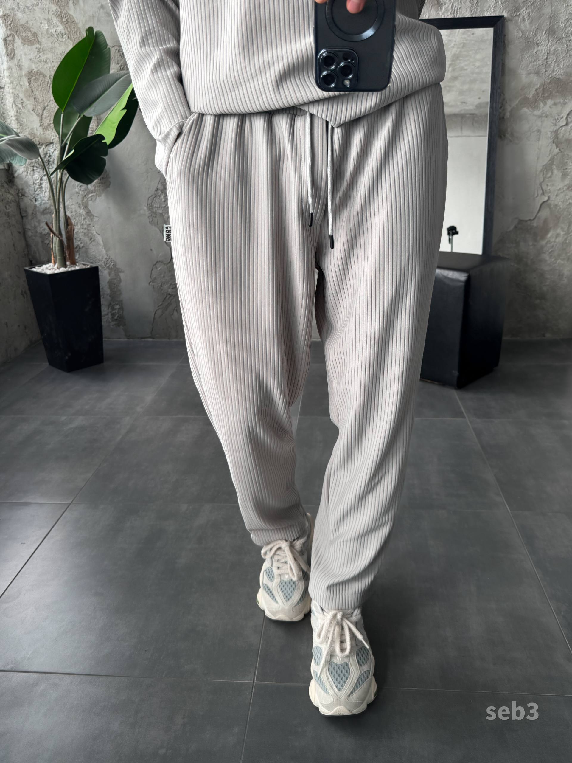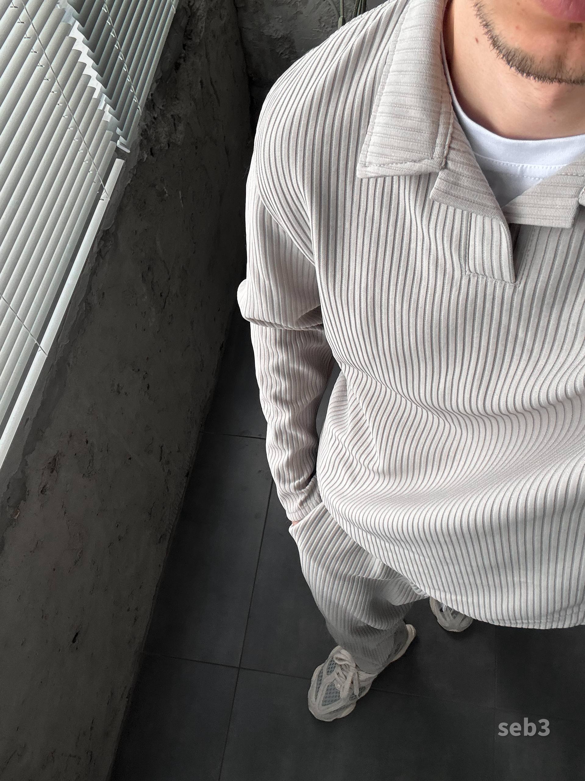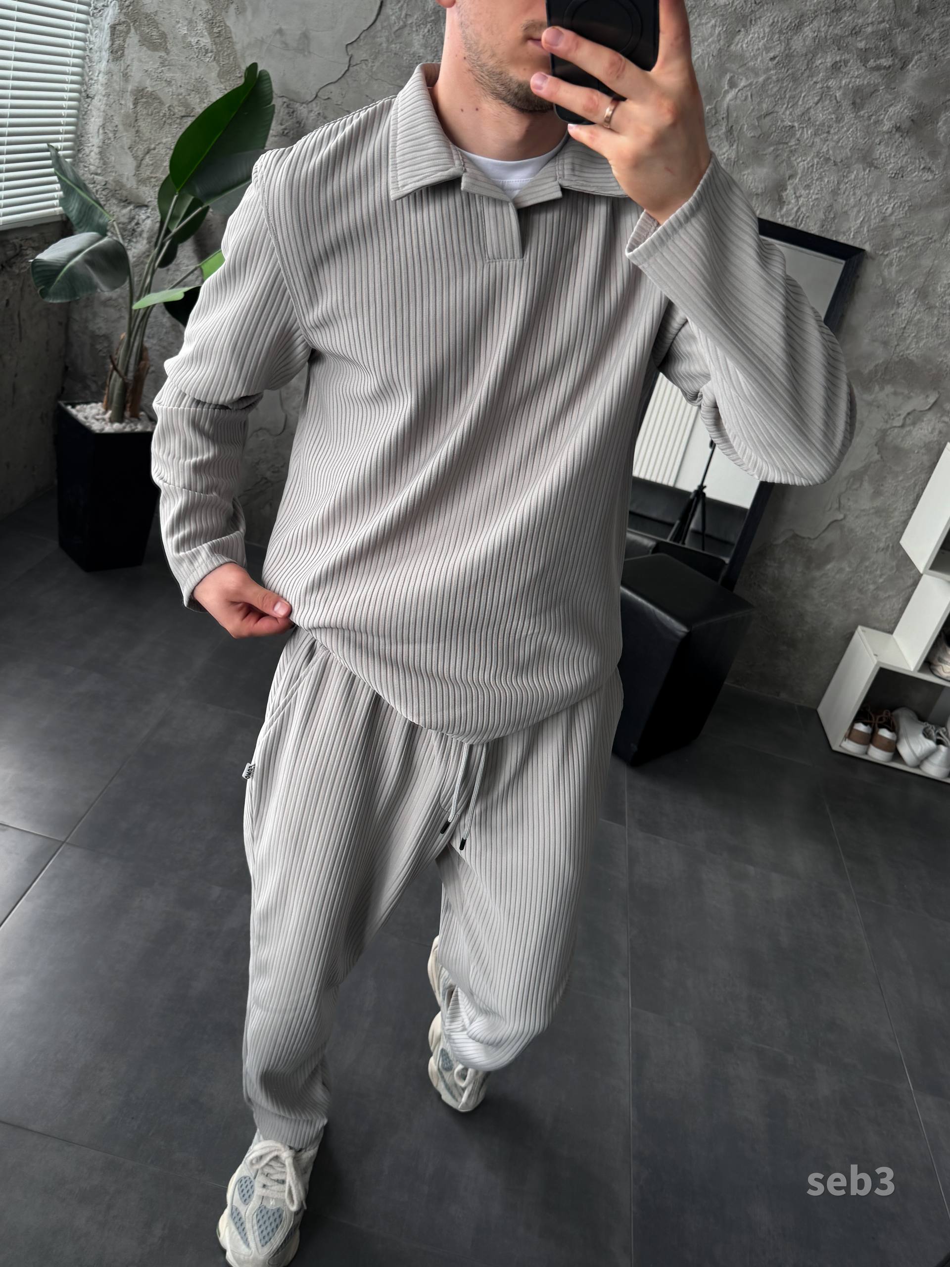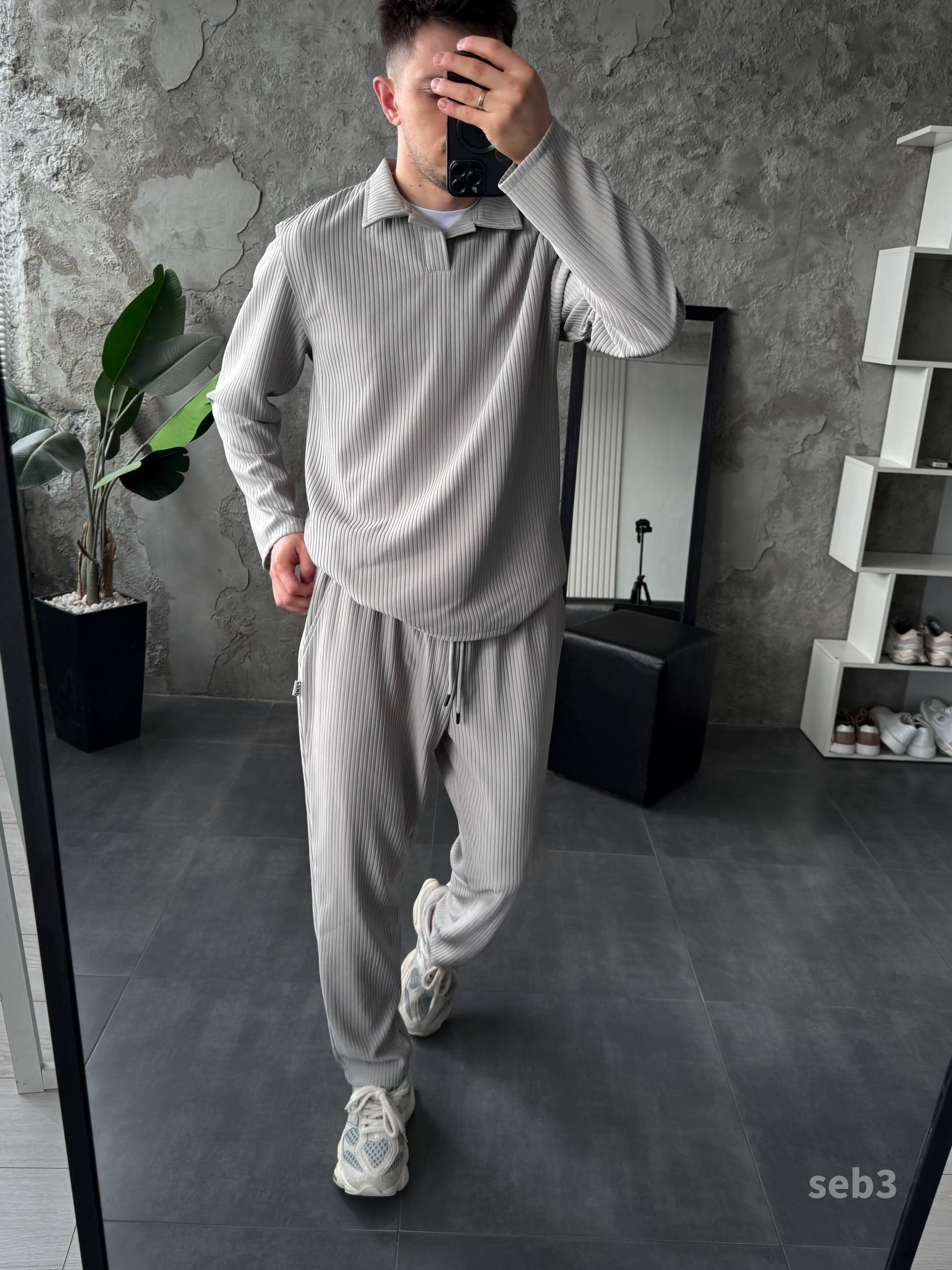 Чоловічий Базовий Сірий Костюм в Рубчик – Кофта Поло + Штани на Резинці