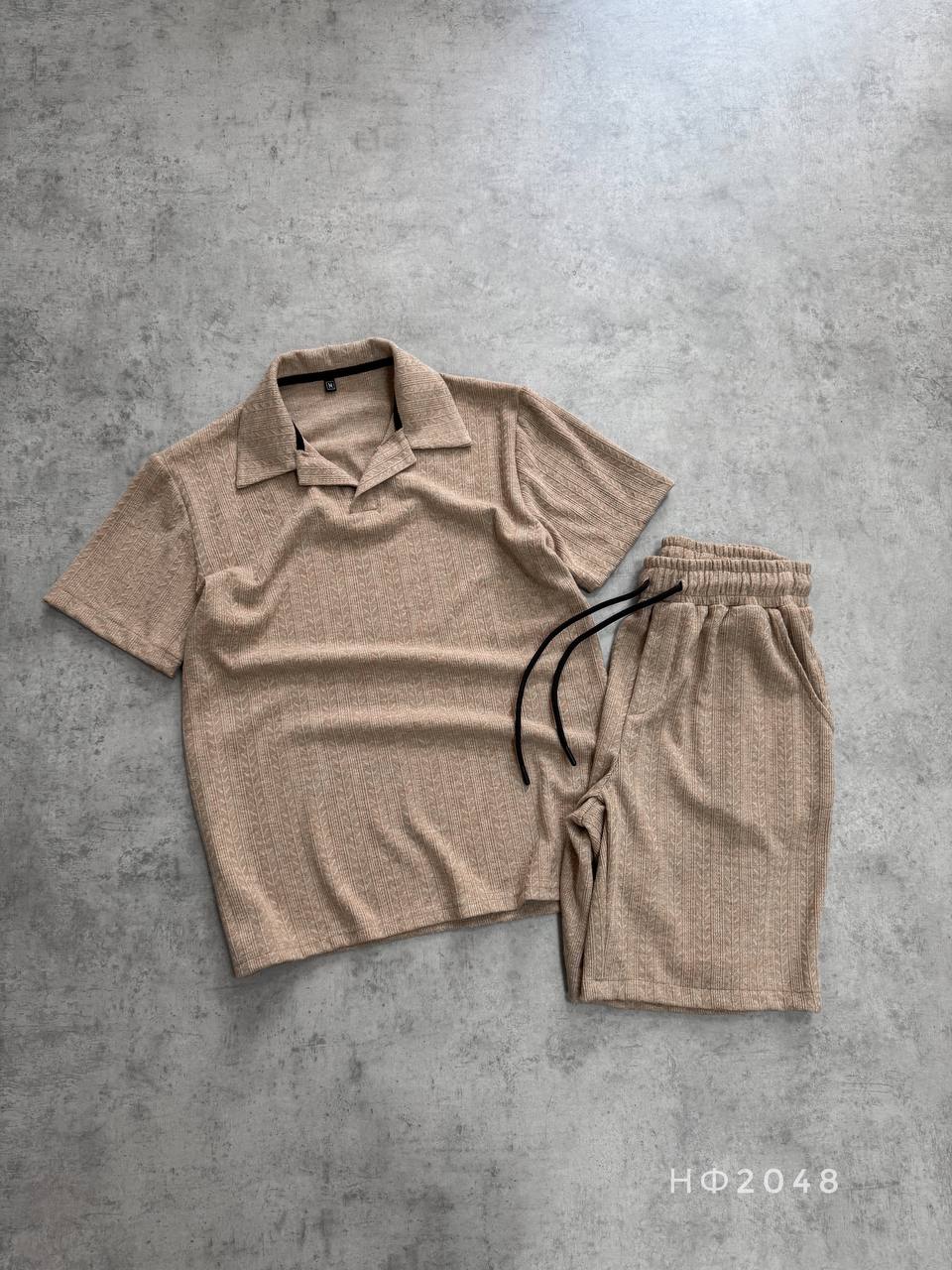 Чоловічий Базовий Трикотажний Літній Бежевий Костюм Вільного Крою – Футболка Поло + Шорти