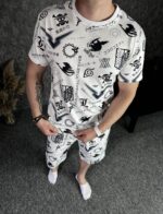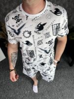 Чоловічий Білий Літній Комплект з Принтом – Оверсайз Футболка + Шорти