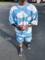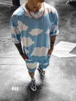 Чоловічий Блакитний Комплект Оверсайз у Прінт Хмарах – Футболка + Шорти