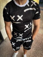 Чоловічий Чорний Літній Комплект з Принтом “X-Smile” – Вільна футболка + шорти