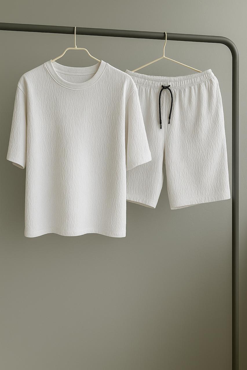 Чоловічий Легкий Літній Білий Костюм Футболка Шорти – Муслін Жатка
