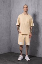 Чоловічий Літній Бежевий Комплект Оверсайз з Написами “High Life” – Футболка + Шорти