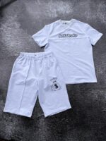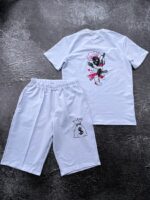 Чоловічий Літній Білий Костюм Двійка з Принтом на Спині – Футболка + Шорти