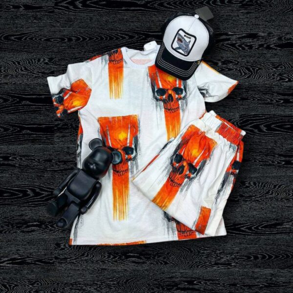 Чоловічий Літній Білий Костюм Комплект у Принтах Черепах – Футболка + Шорти