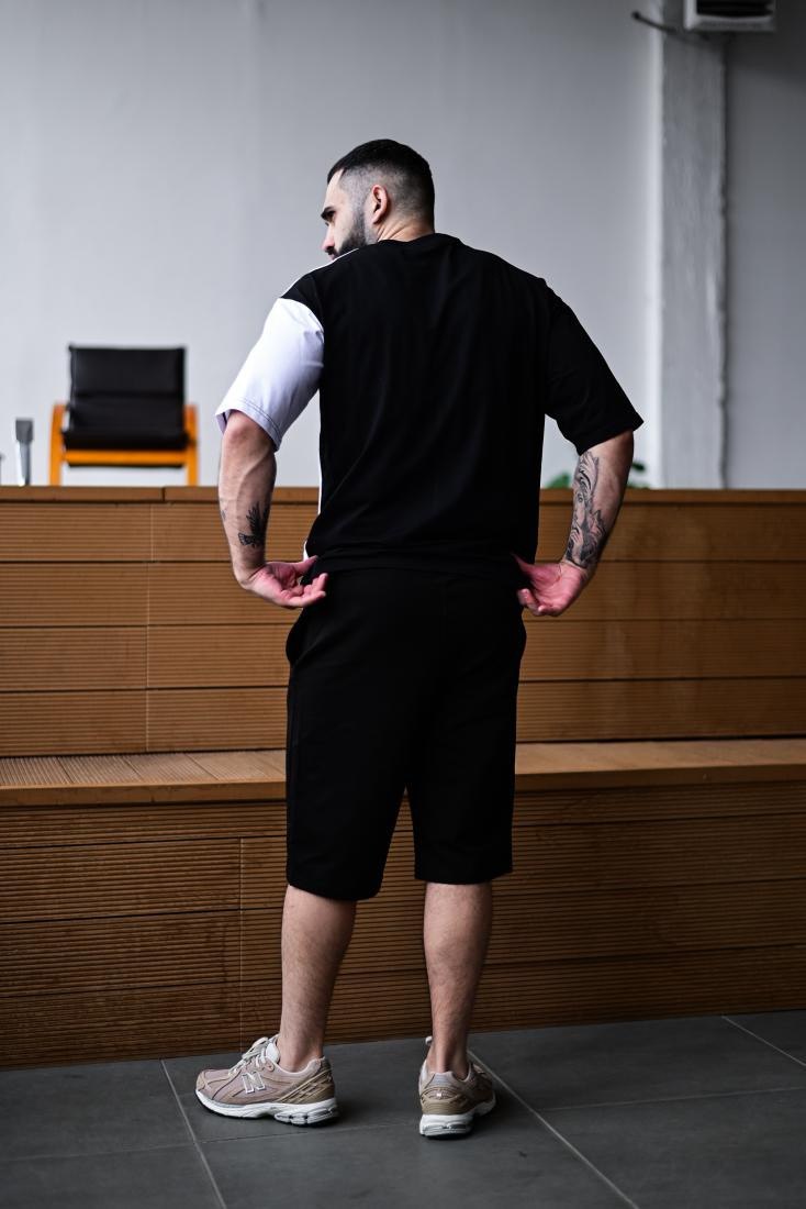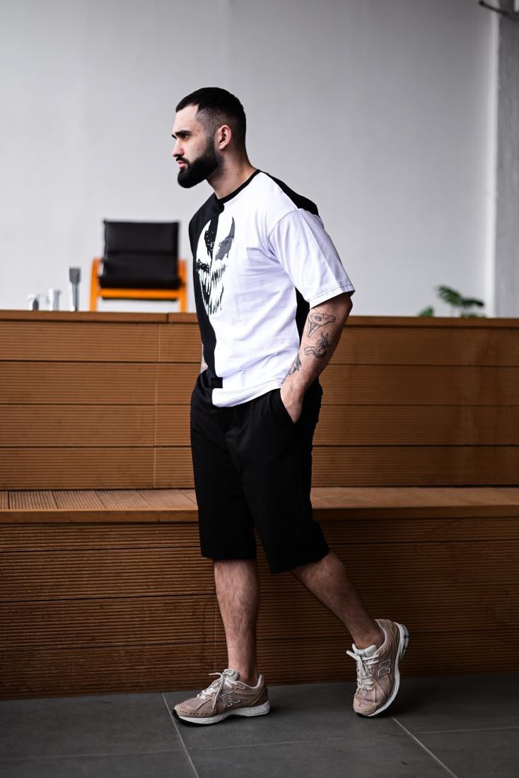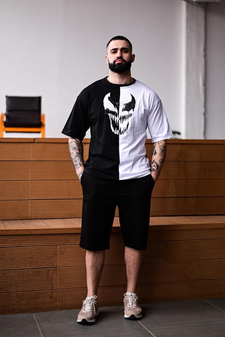 Чоловічий Літній Чорно-Білий Костюм Комплект Оверсайз з Принтом Веном (Футболка + Шорти)