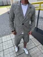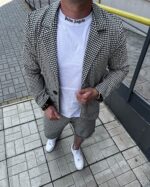 Чоловічий Літній Чорно-Білий Костюм у Принт Гусяча Лапка – Жакет + Шорти