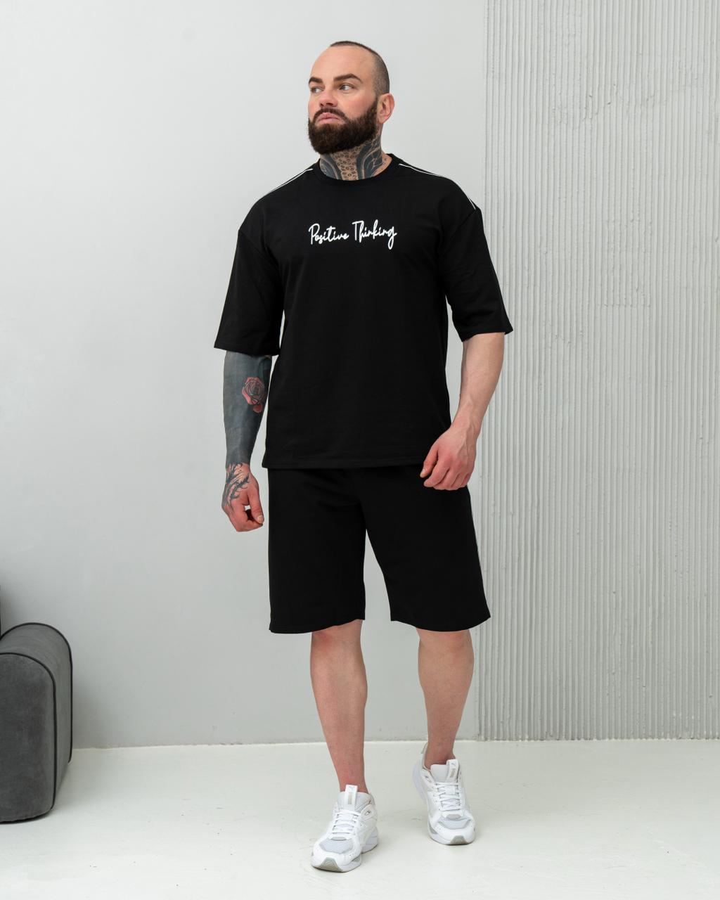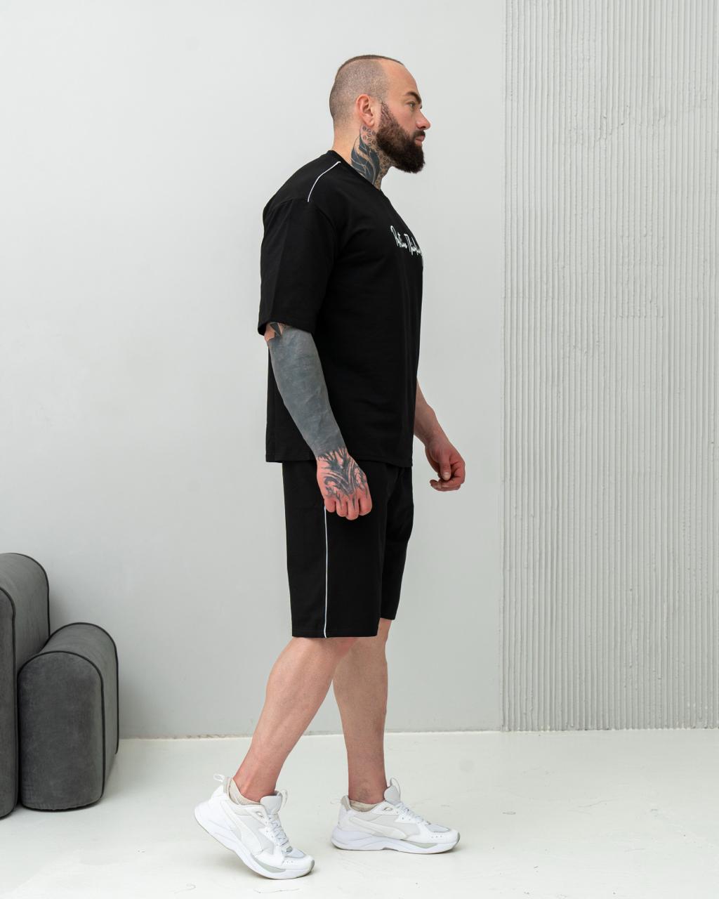 Чоловічий Літній Чорний Комплект Футболка Шорти – Вільного Крою з Кантом