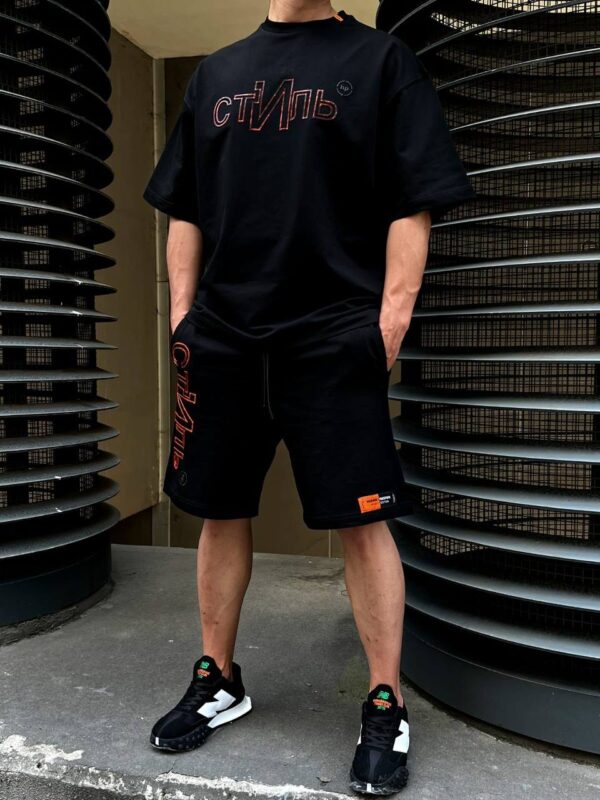 Чоловічий Літній Чорний Комплект Вільний Оверсайз – Футболка + Шорти з Принтом Написом “Стиль”