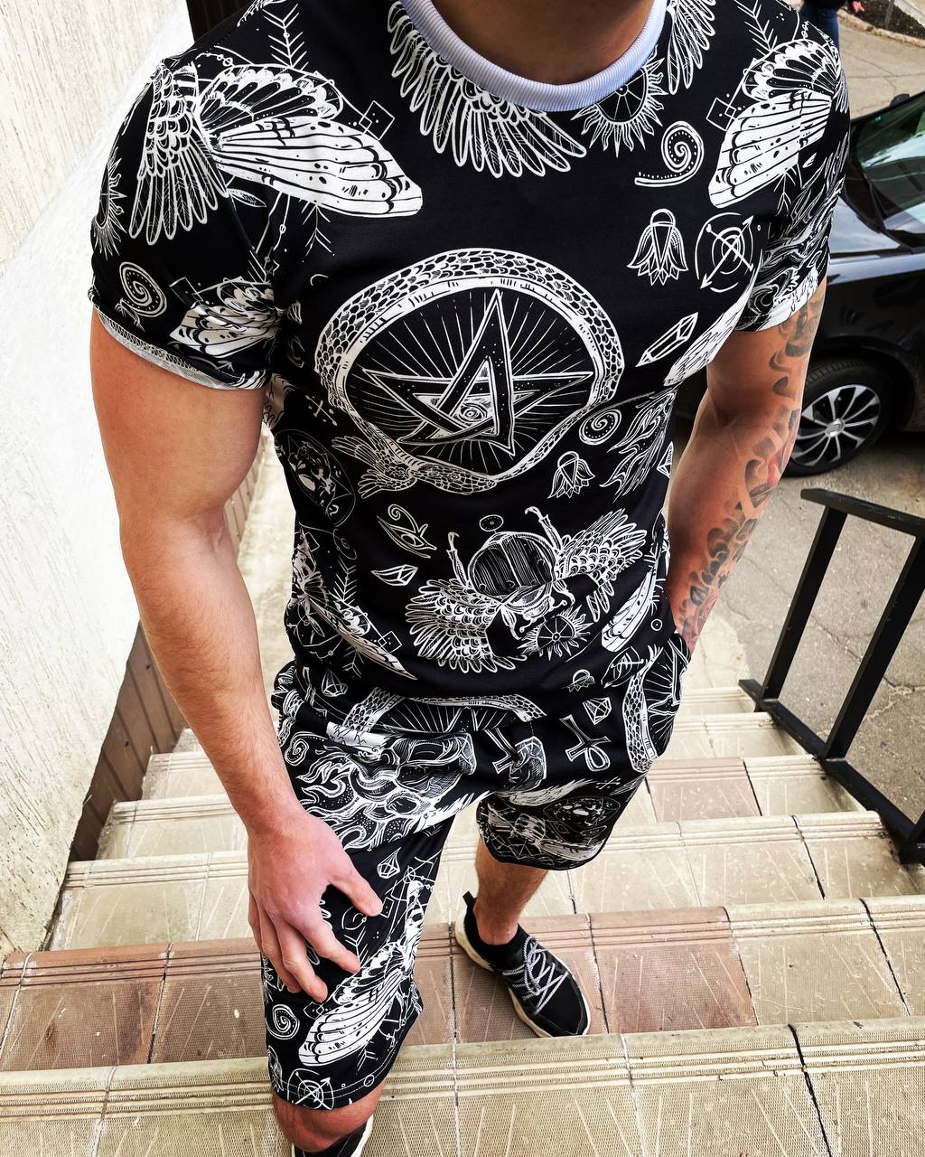Чоловічий Літній Чорний Костюм Комплект у Принтах