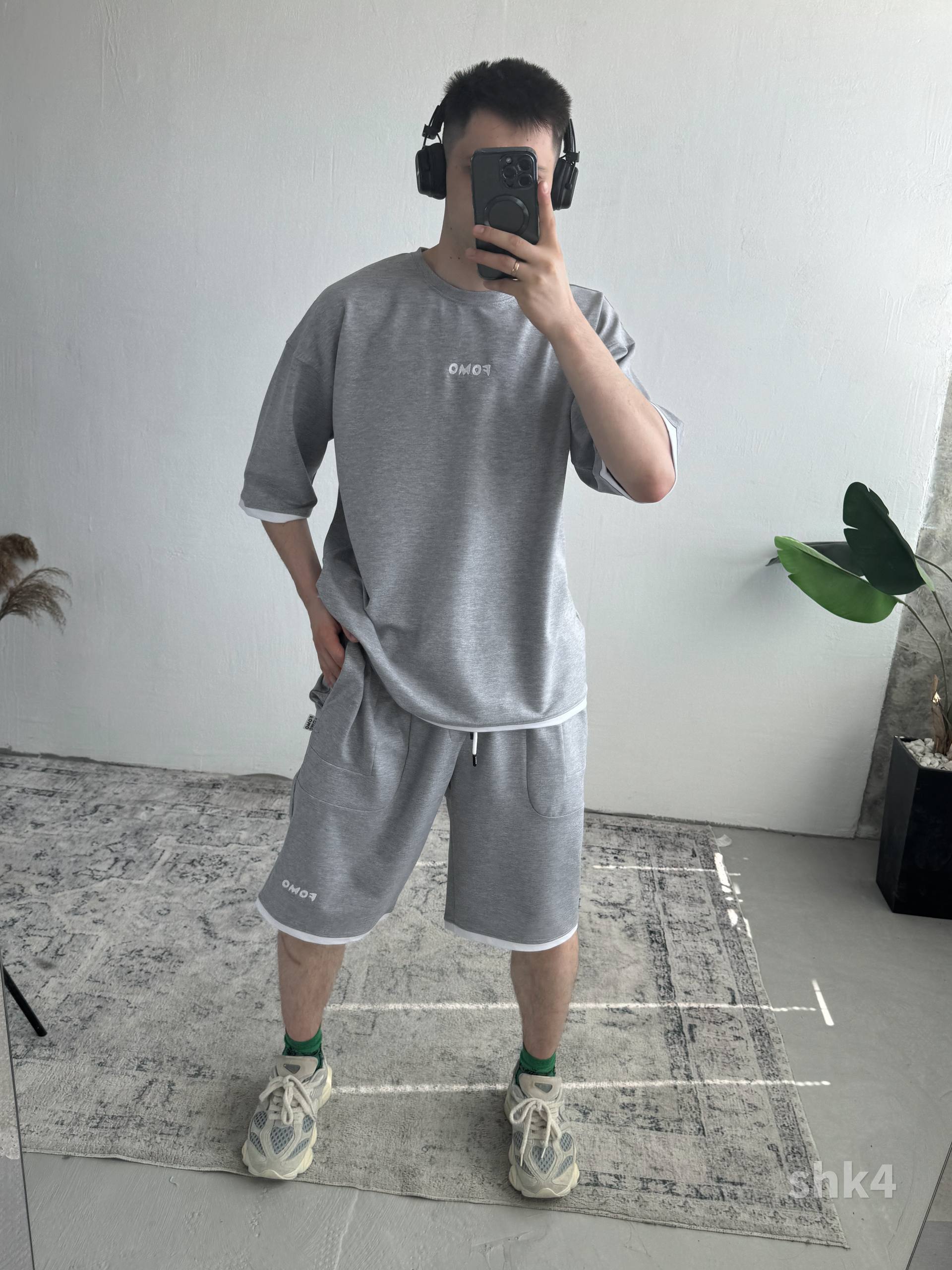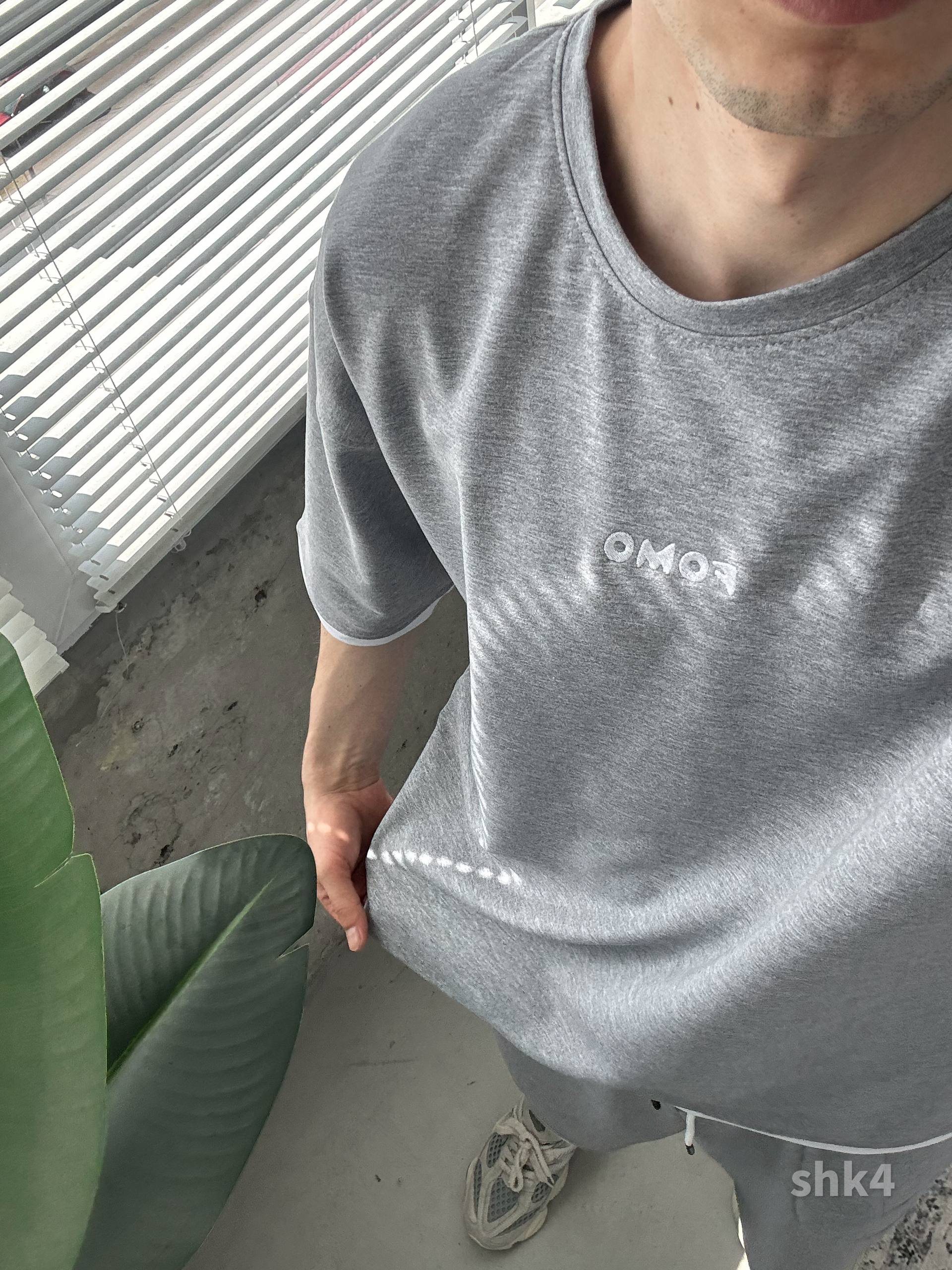 Чоловічий Літній Костюм Сірий Меланж Футболка Шорти Вільного Крою з Окантовкою