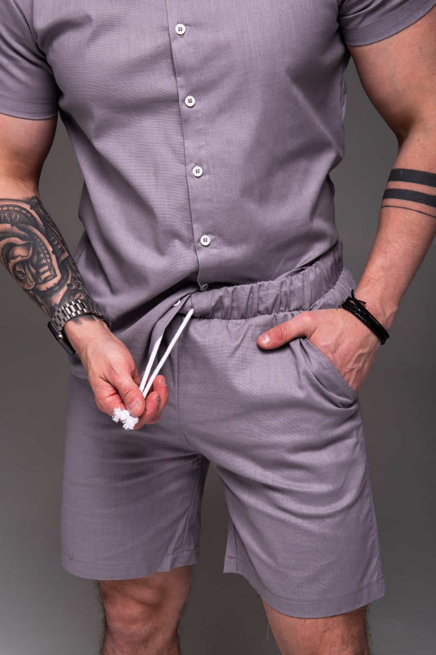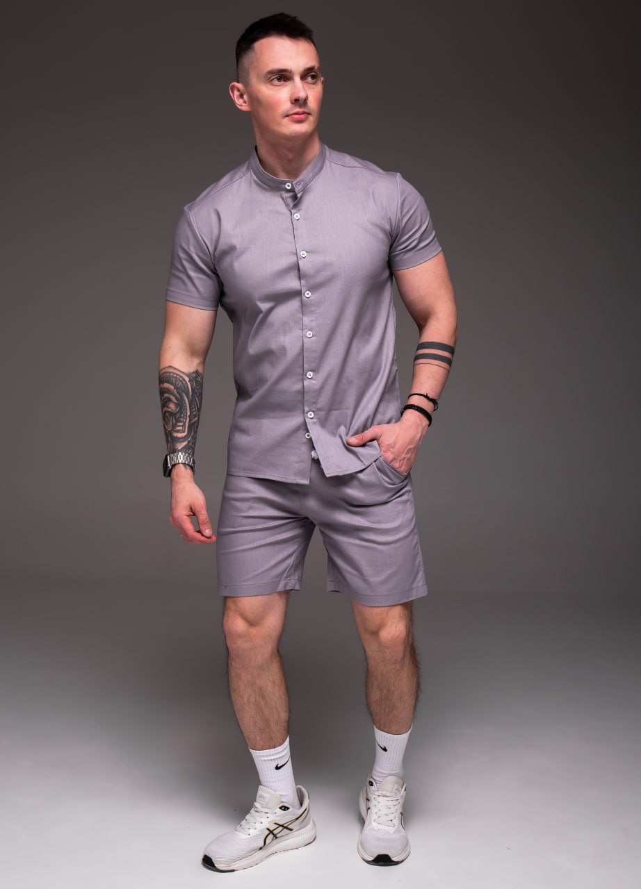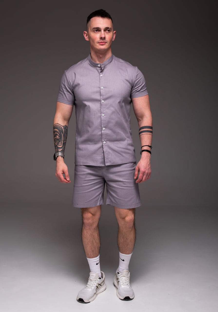 Чоловічий Літній Сірий Костюм Льон – Базовий Комплект Сорочка Шорти