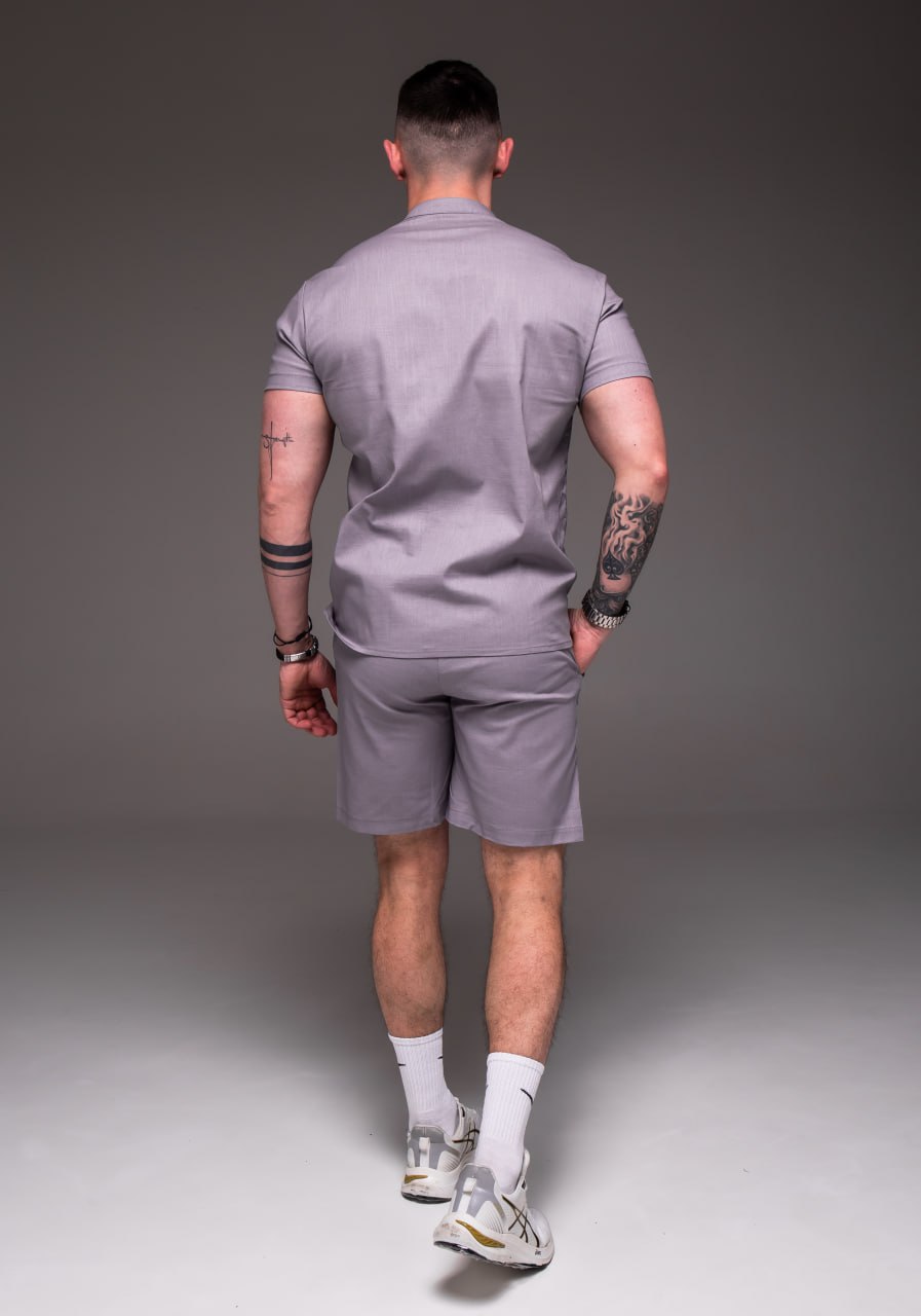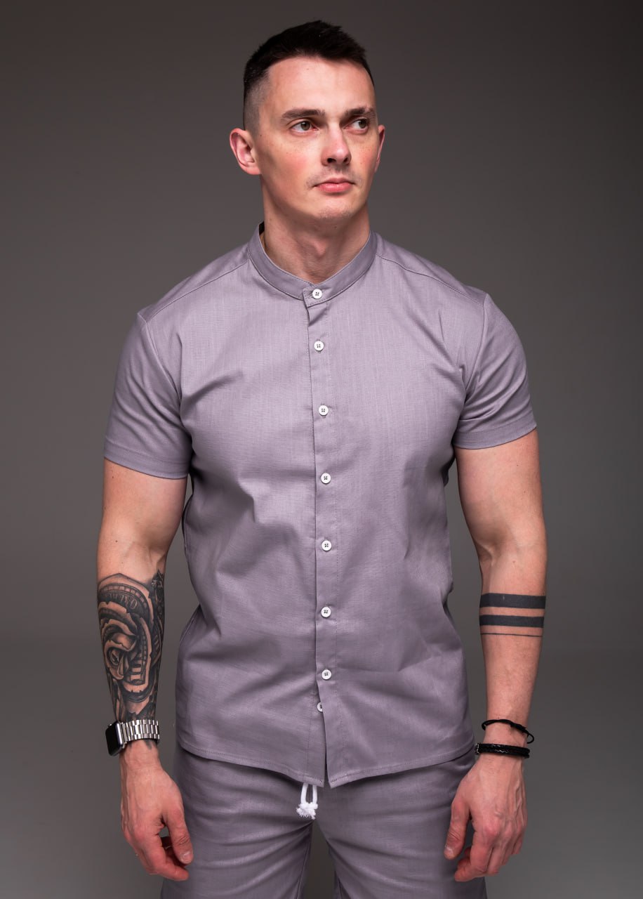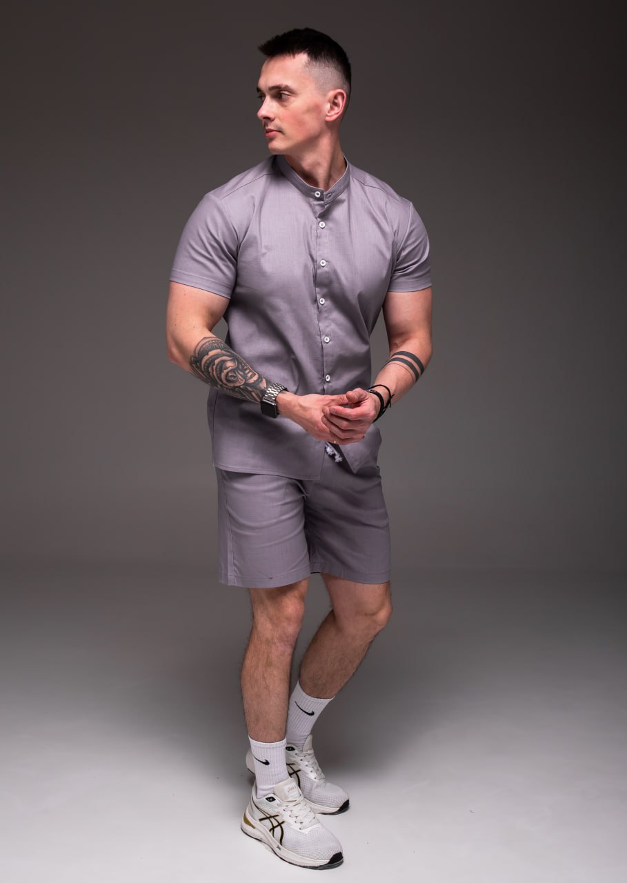 Чоловічий Літній Сірий Костюм Льон – Базовий Комплект Сорочка Шорти