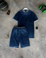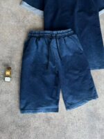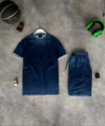 Чоловічий Літній Синій Костюм Варенка під Вінтаж – Комплект Футболка з Відворотом на Рукавах + Шорти на Резинці