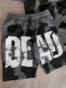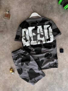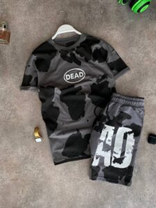 Будьте першим, хто залишив відгук “Чоловічий Літній Темно-Сірий Костюм Комплект у Прінт Плями з Написом (Футболка + Шорти)”“ Скасувати коментар