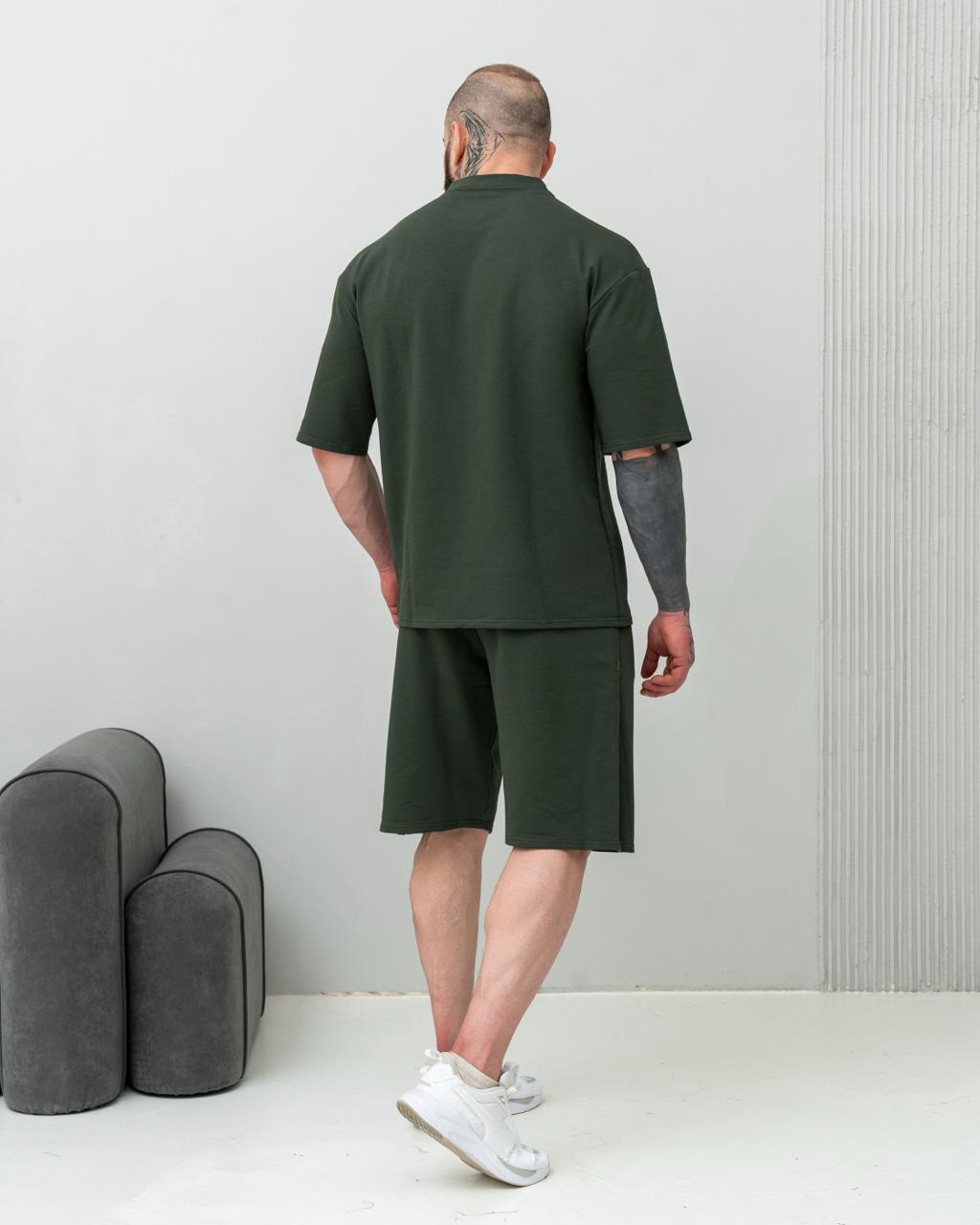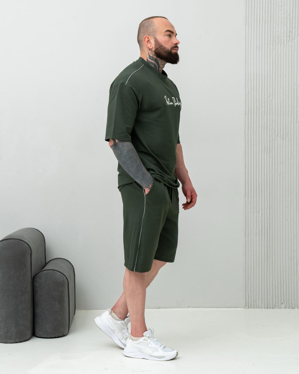Чоловічий Літній Зелений Комплект Футболка Шорти – Вільного Крою з Кантом