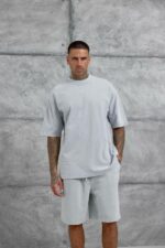 Чоловічий Сірий Літній Костюм Бавовняний Варений Оверсайз (Футболка + Шорти)