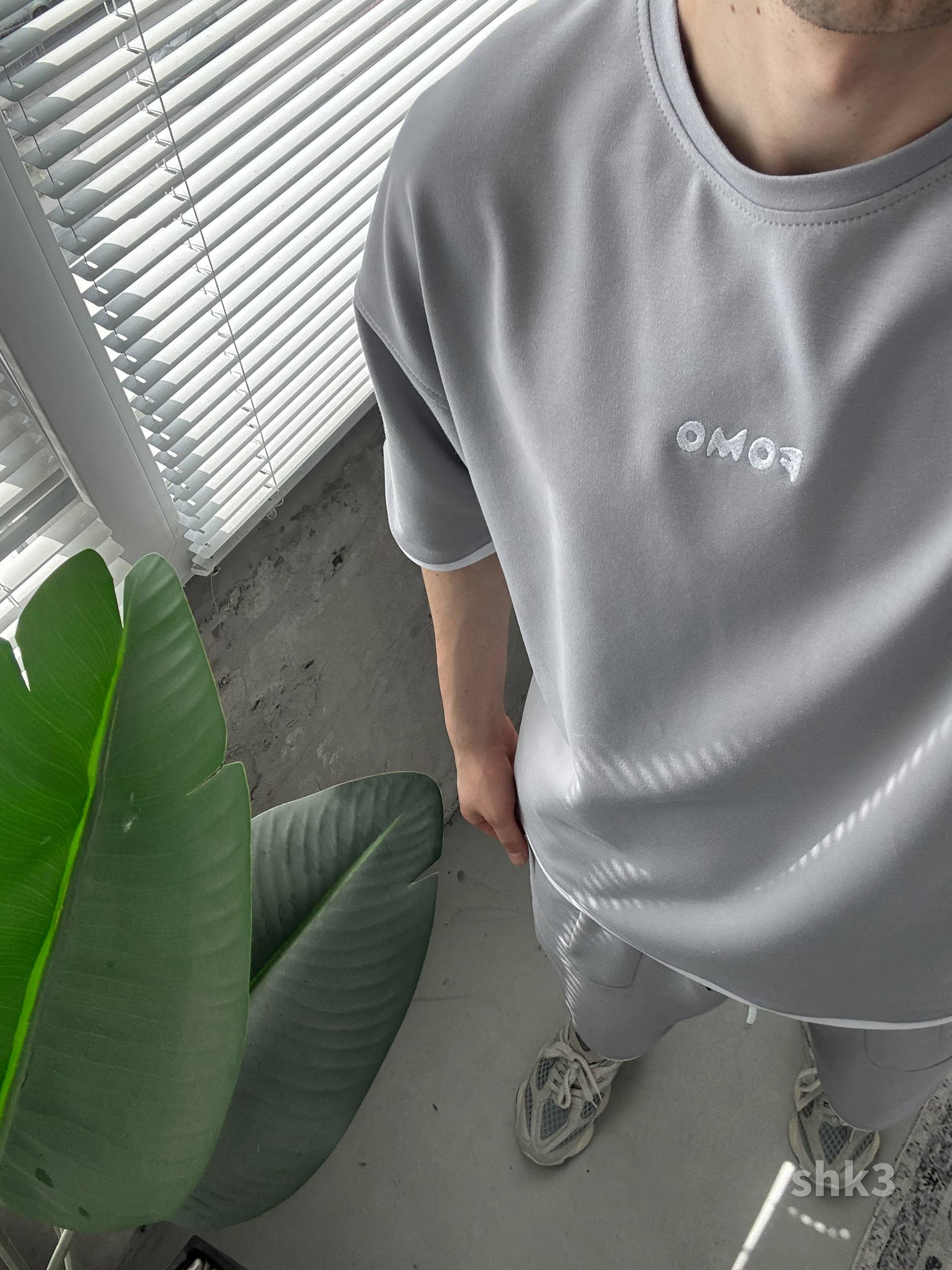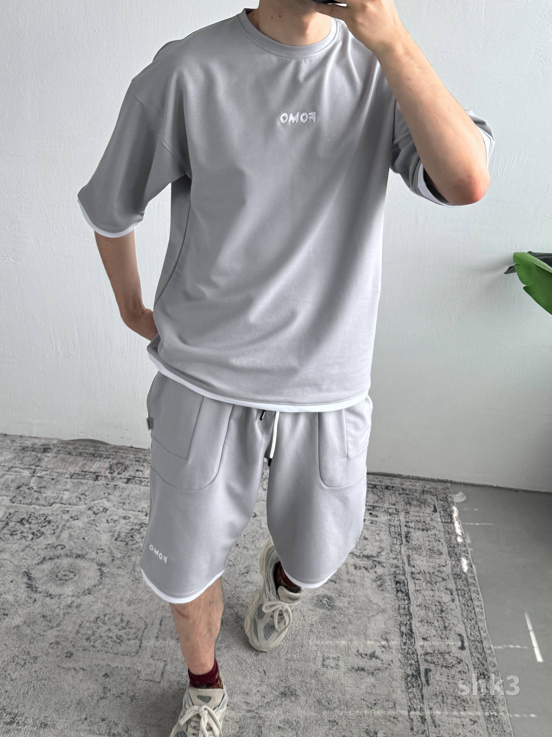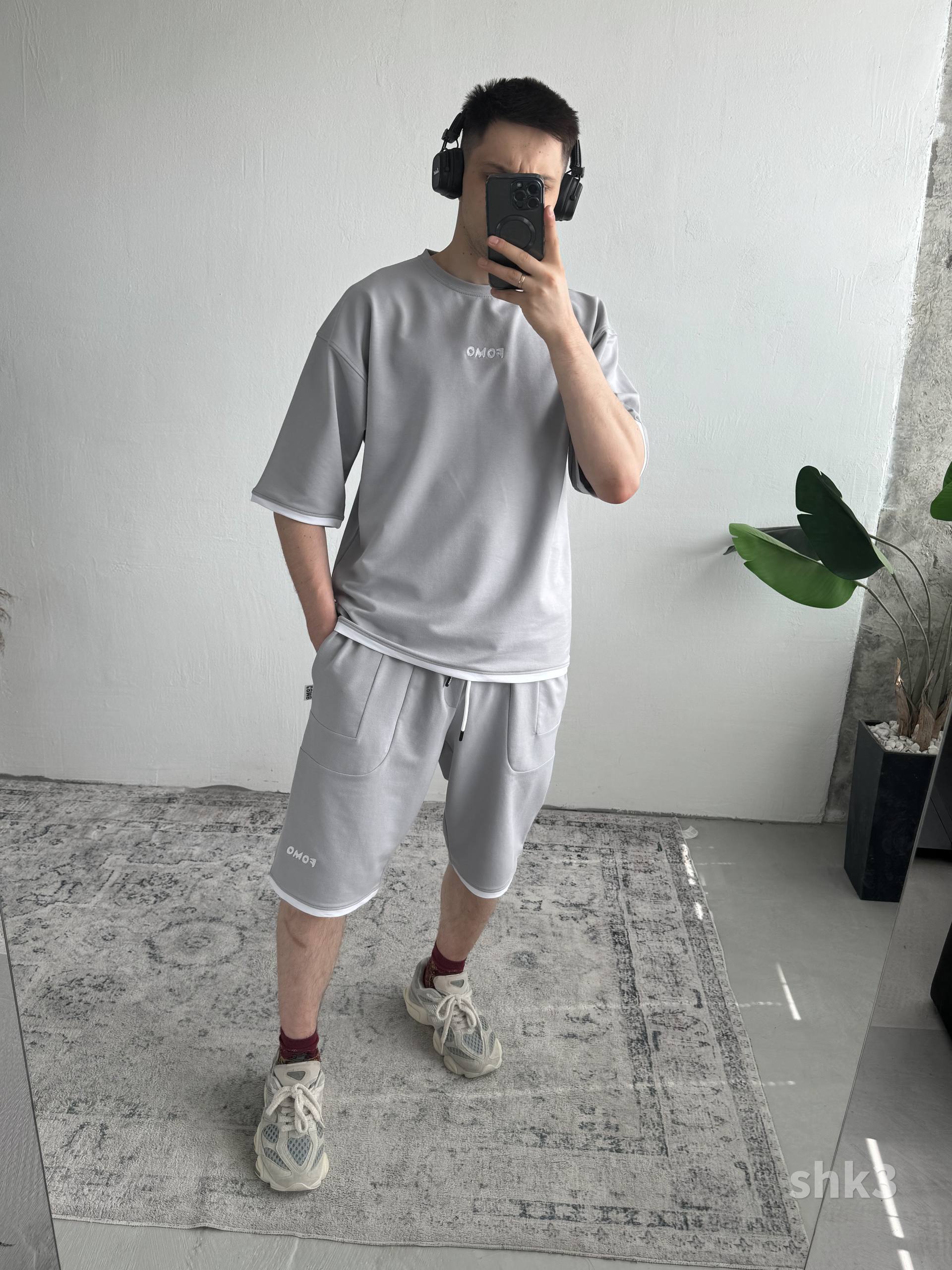 Чоловічий Сірий Літній Костюм Футболка Шорти Вільного Крою з Окантовкою