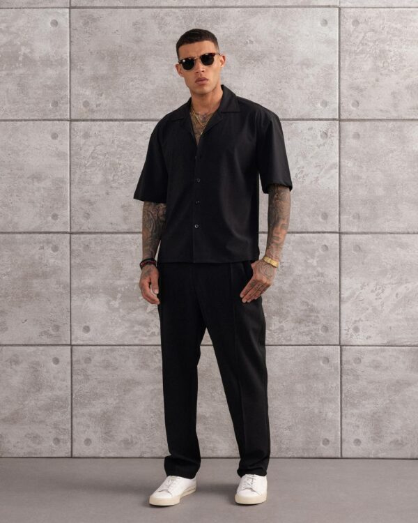 Чоловічий Вільний Чорний Костюм Бавовна (Сорочка + Штани)