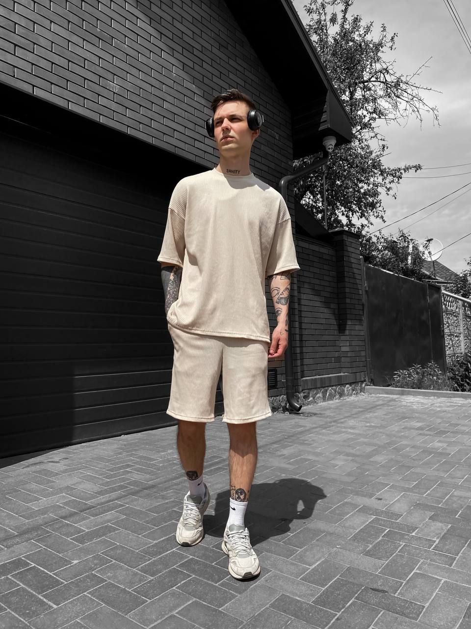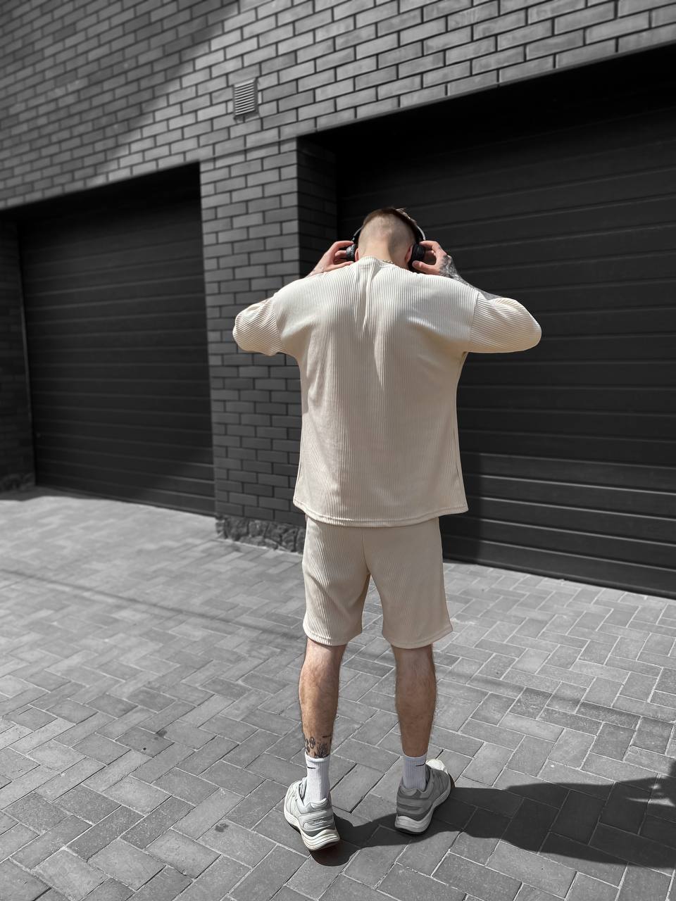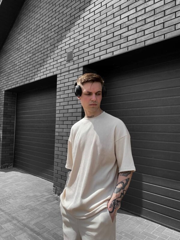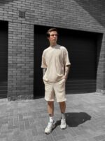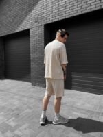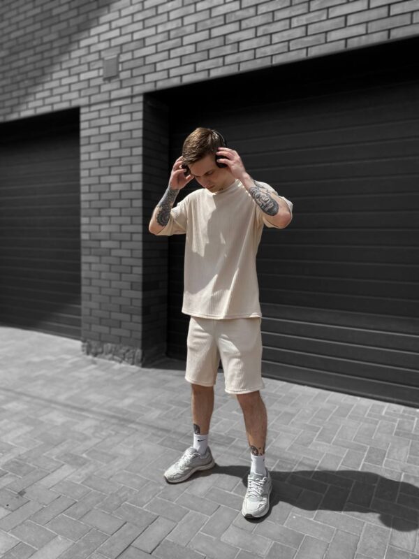 Чоловічий Вільний Літній Бежевий Комплект Рубчик – Футболка та Шорти