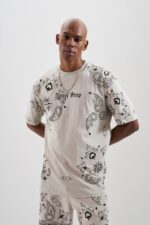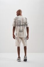 Чоловічий Вільний Сірий Літній Комплект у Принтах – Футболка + Шорти