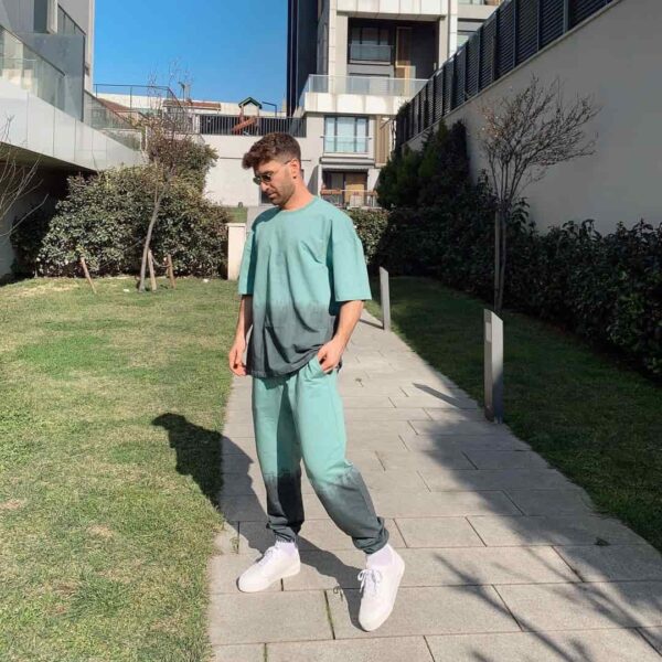 Чоловічий Зелений Комплект Костюм Вільного Оверсайз Крою – Футболка та Штани з Омбре Переходом