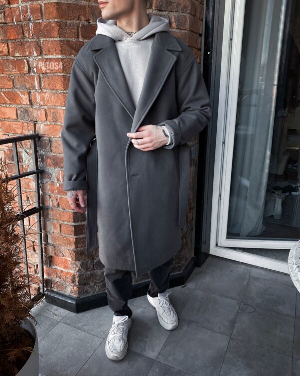 Чоловіче Пальто Демісезонне Графітного Колір – Класичне Базове з Поясом