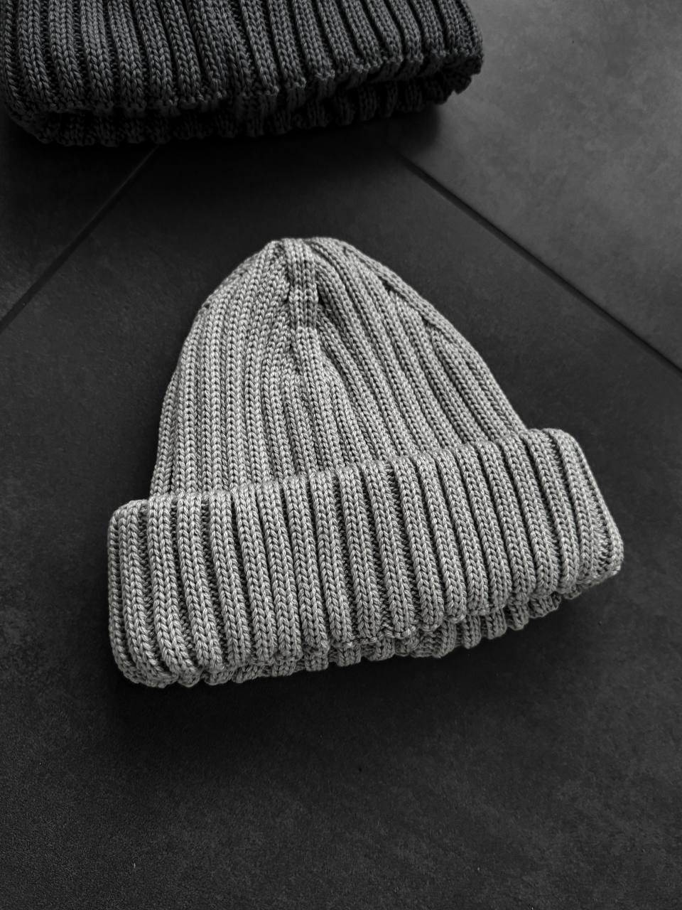 Чоловіча Базова Чорна Шапка в Рубчик з Відворотом та Вишивкою (Копировать) (Копировать)