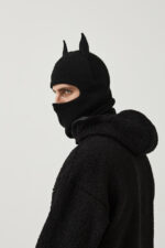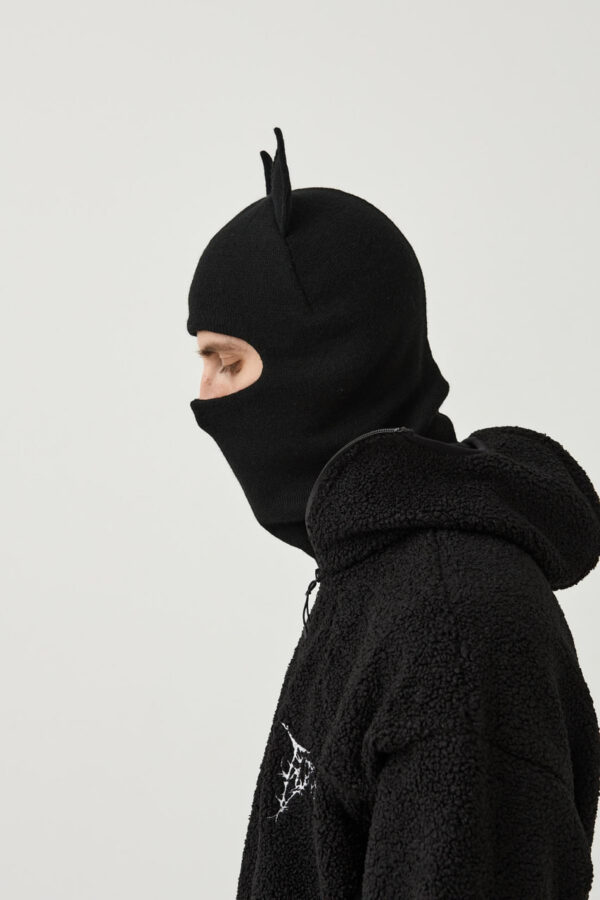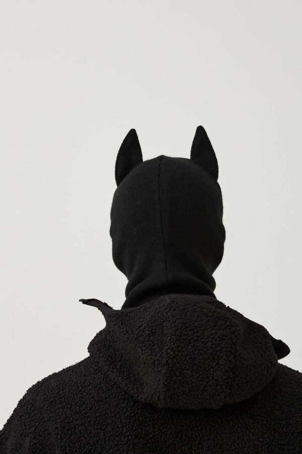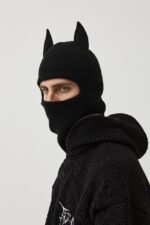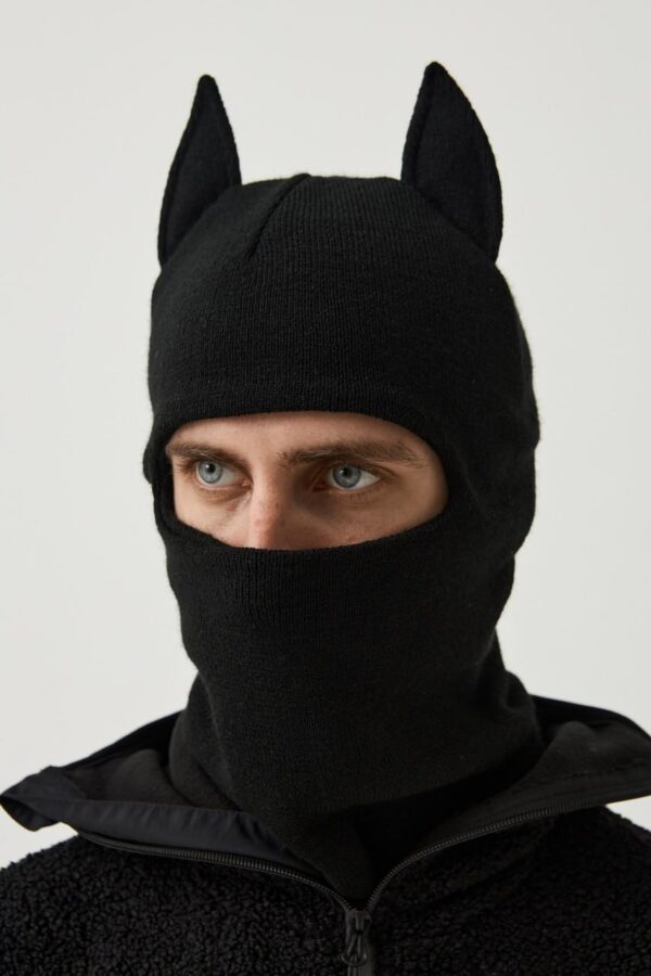 Чоловіча Тепла Чорна Балаклава з Вухами Вовка