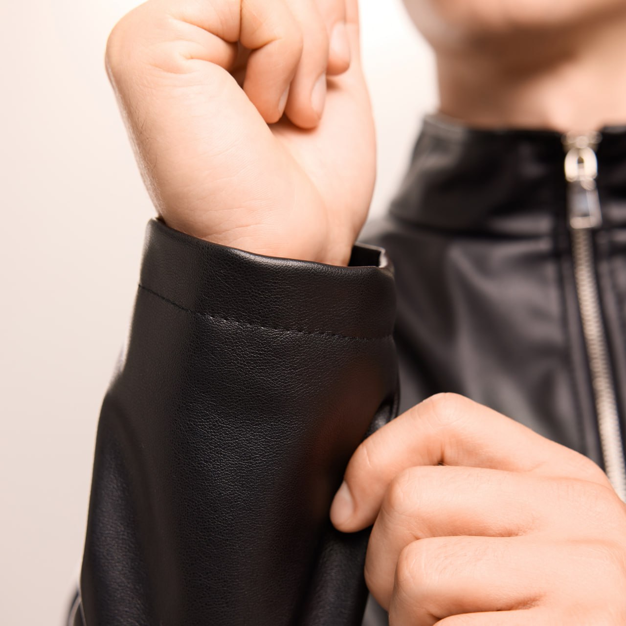 Чоловіча Демісезонна Чорна Шкіряна Куртка на Блискавці з Коміром Стійкою