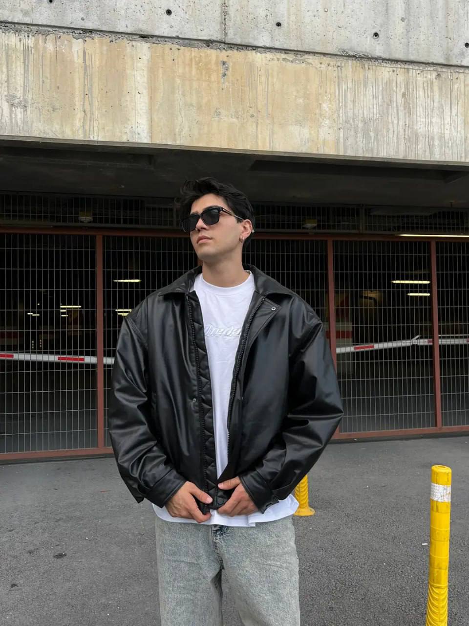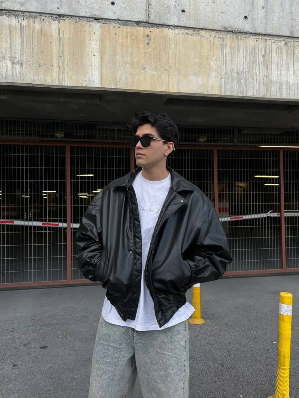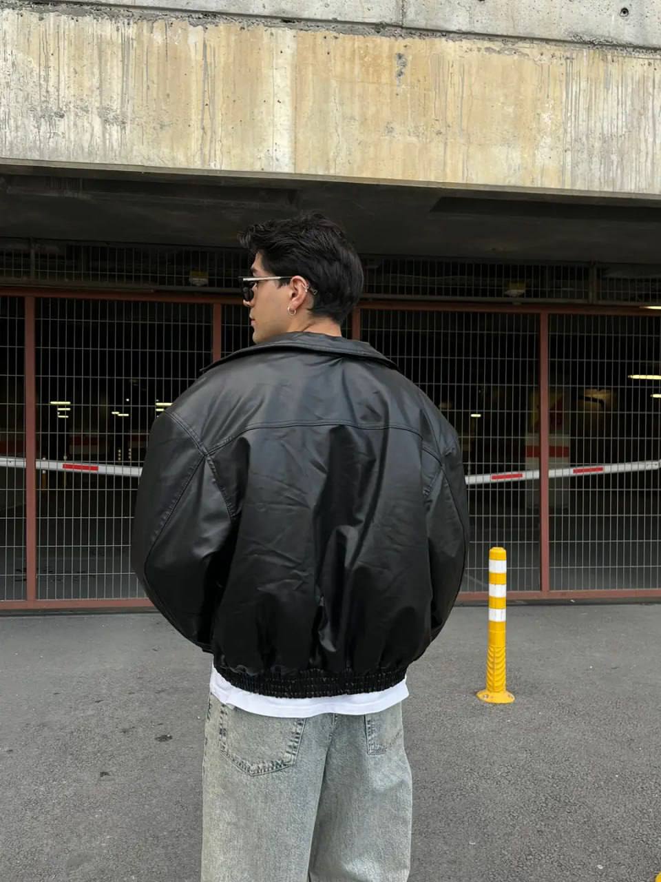 Чоловіча Демісезонна Чорна Шкіряна Куртка Оверсайз – Об’ємний Бомбер на Блискавці