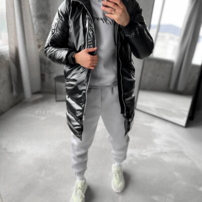 Чоловіча Подовжена Чорна Дублянка – Асиметрична з Капюшоном