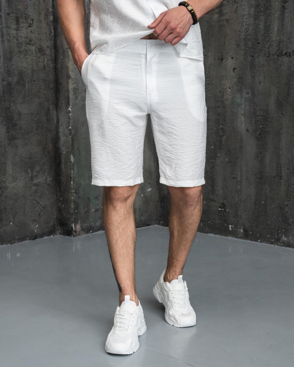 Чоловічі Базові Білі Шорти – Легкі Літні Лляні Жатка