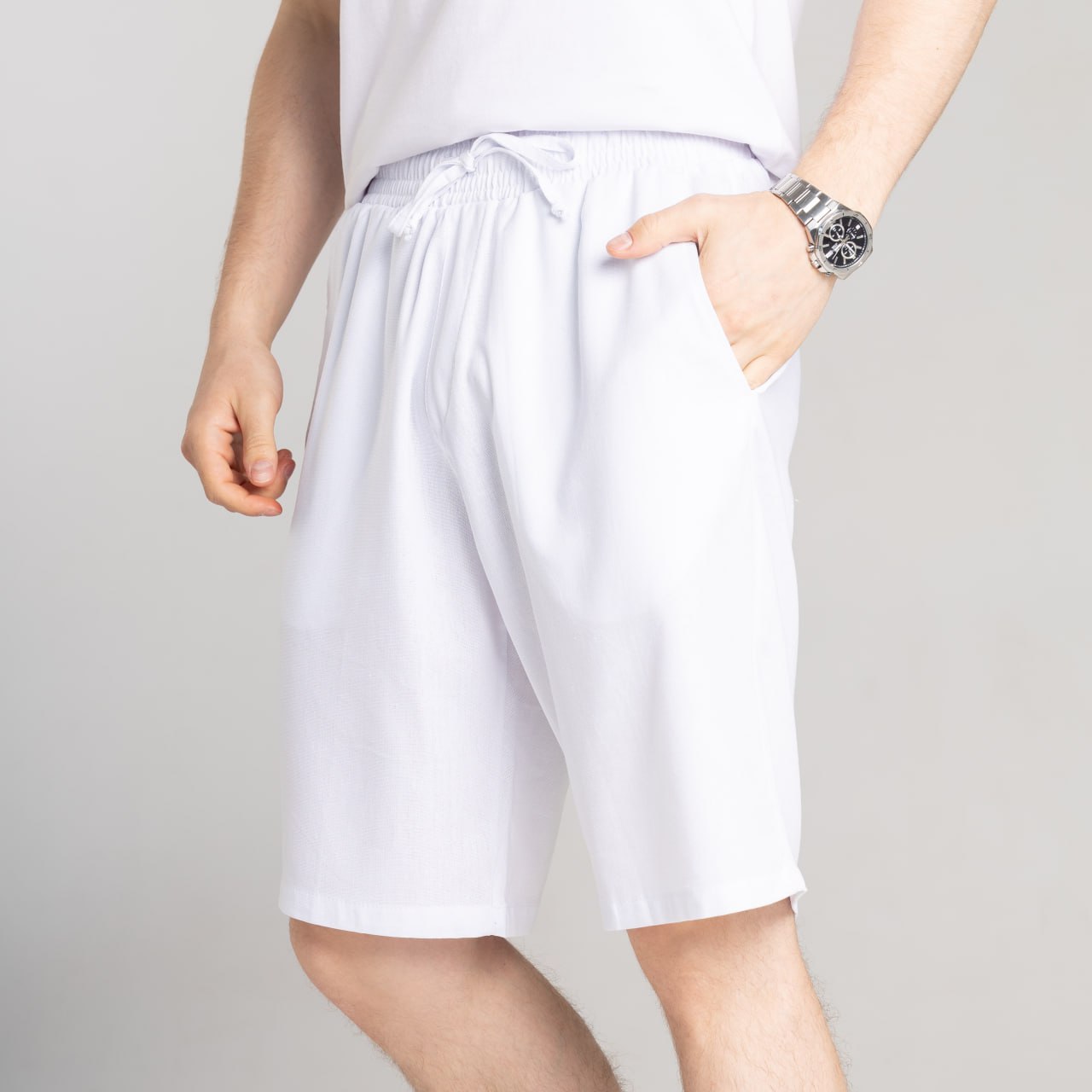 Чоловічі Базові Літні Білі Шорти Вільного Прямого Крою