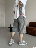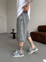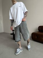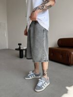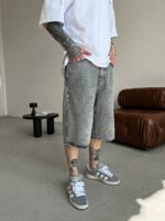 Чоловічі Подовжені Сірі Джинсові Шорти Варенки Вільного Крою