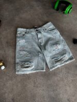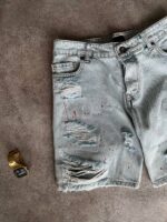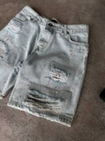 Чоловічі Рвані Блакитні Джинсові Шорти у Бризгах Фарби