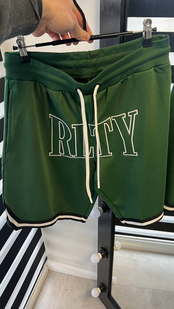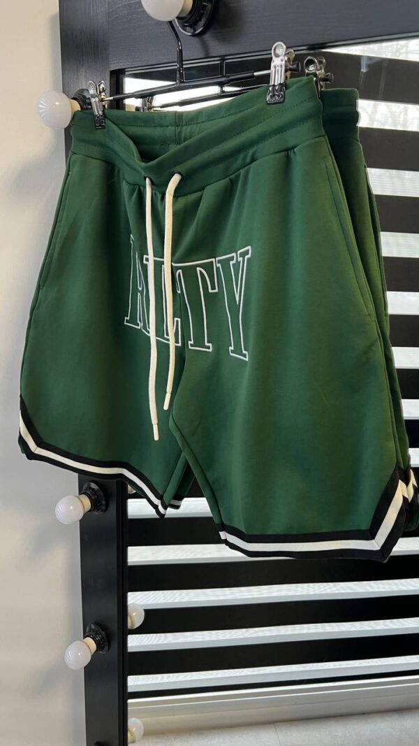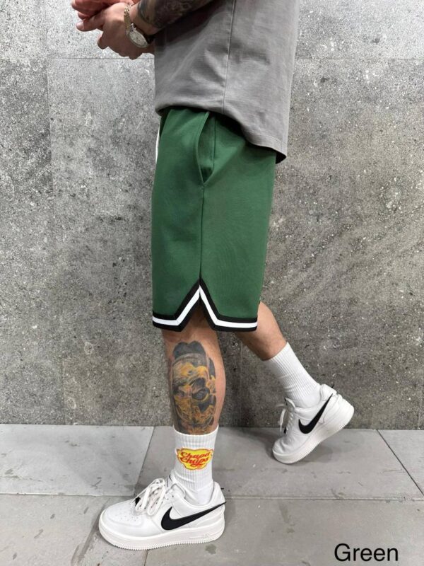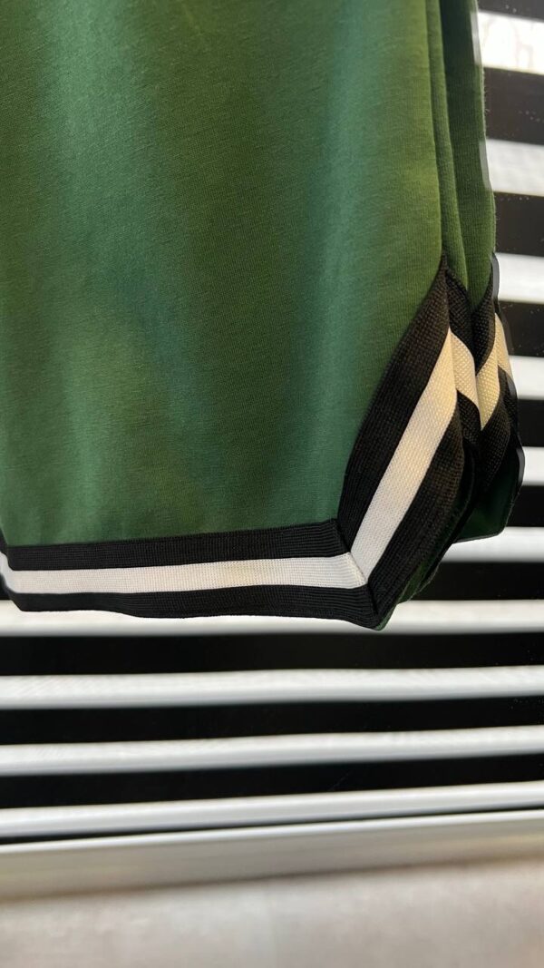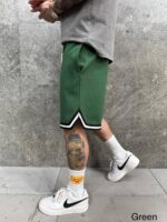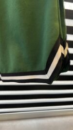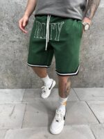 Чоловічі Щільні Зелені Шорти – Вільні Широкі з Вишивкою та Смужками