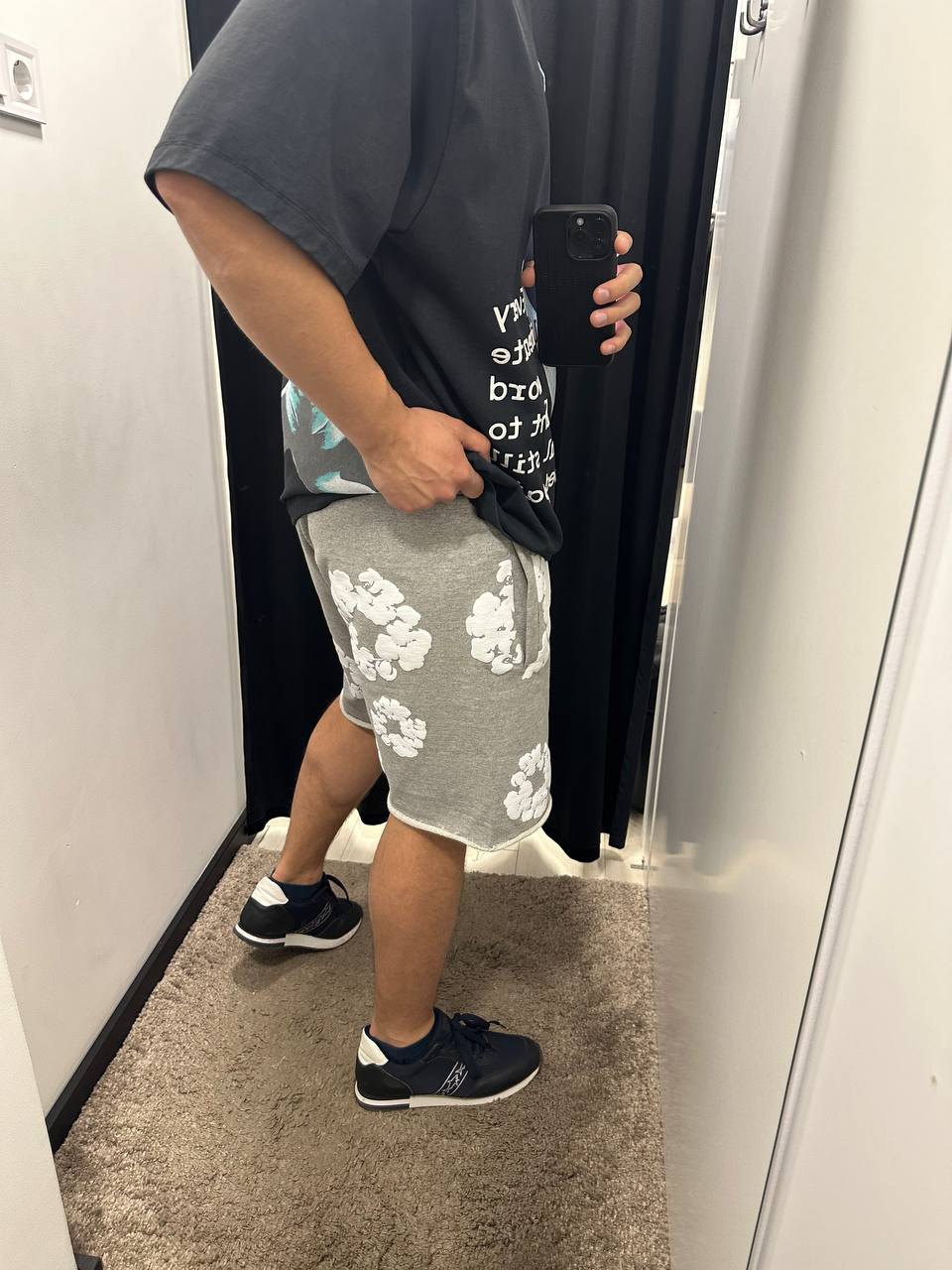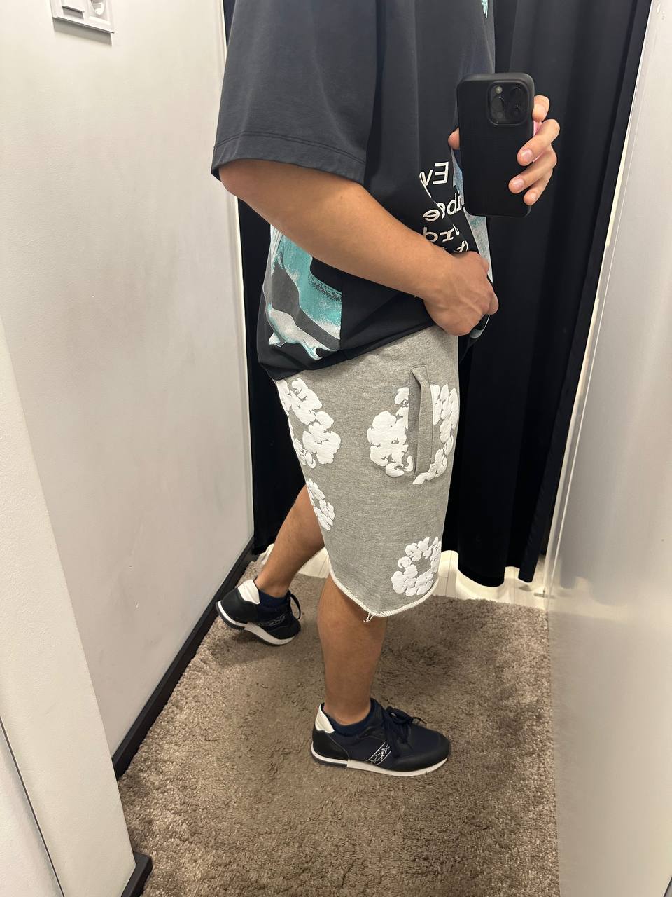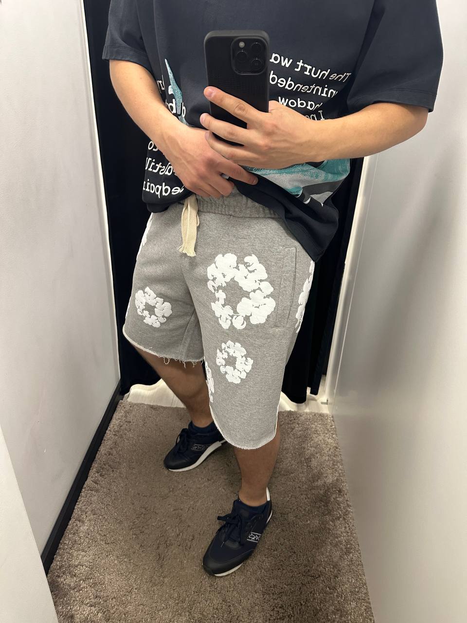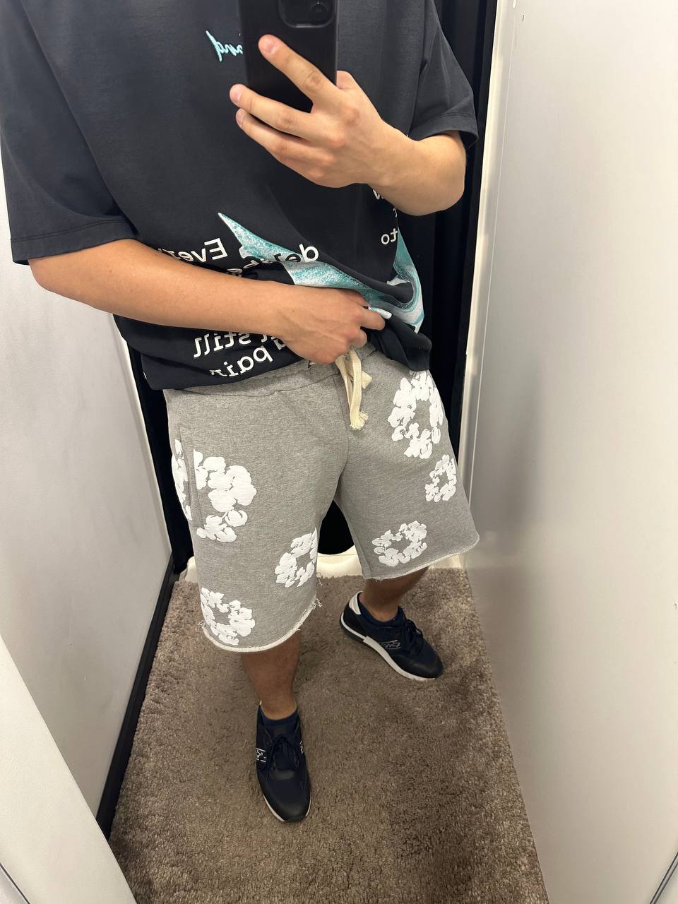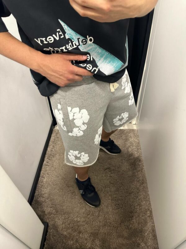 Чоловічі Сірі Шорти Вільного Крою з Принтом та Обрізаним Низом