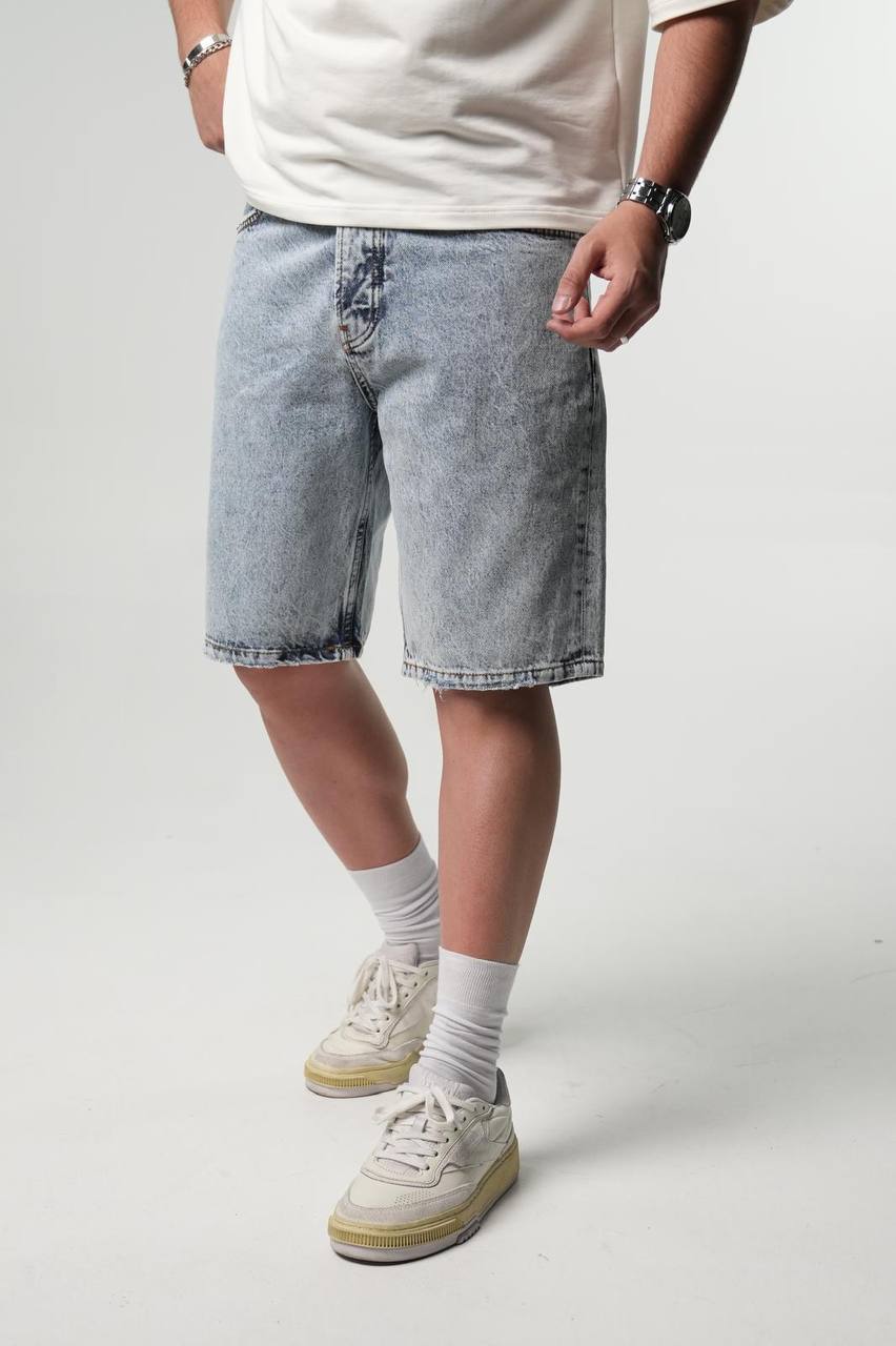 Чоловічі Вільні Прямі Світло-Блакитні Джинсові Шорти з Потертостями