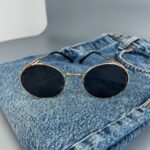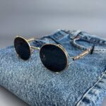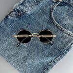Чоловічі Круглі Овальні Чорні Сонцезахисні Окуляри – з Золотистою Металевою Оправою