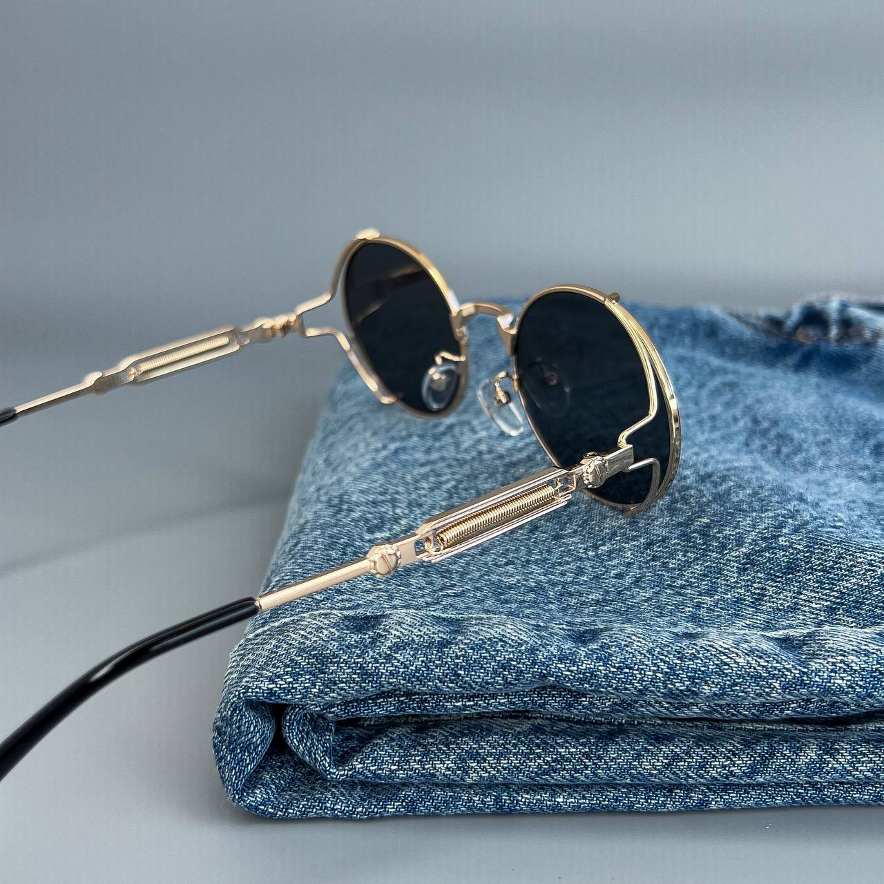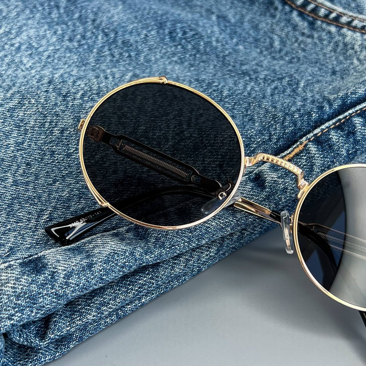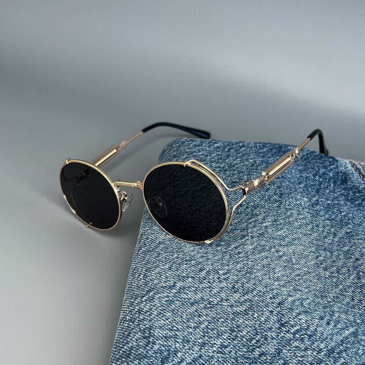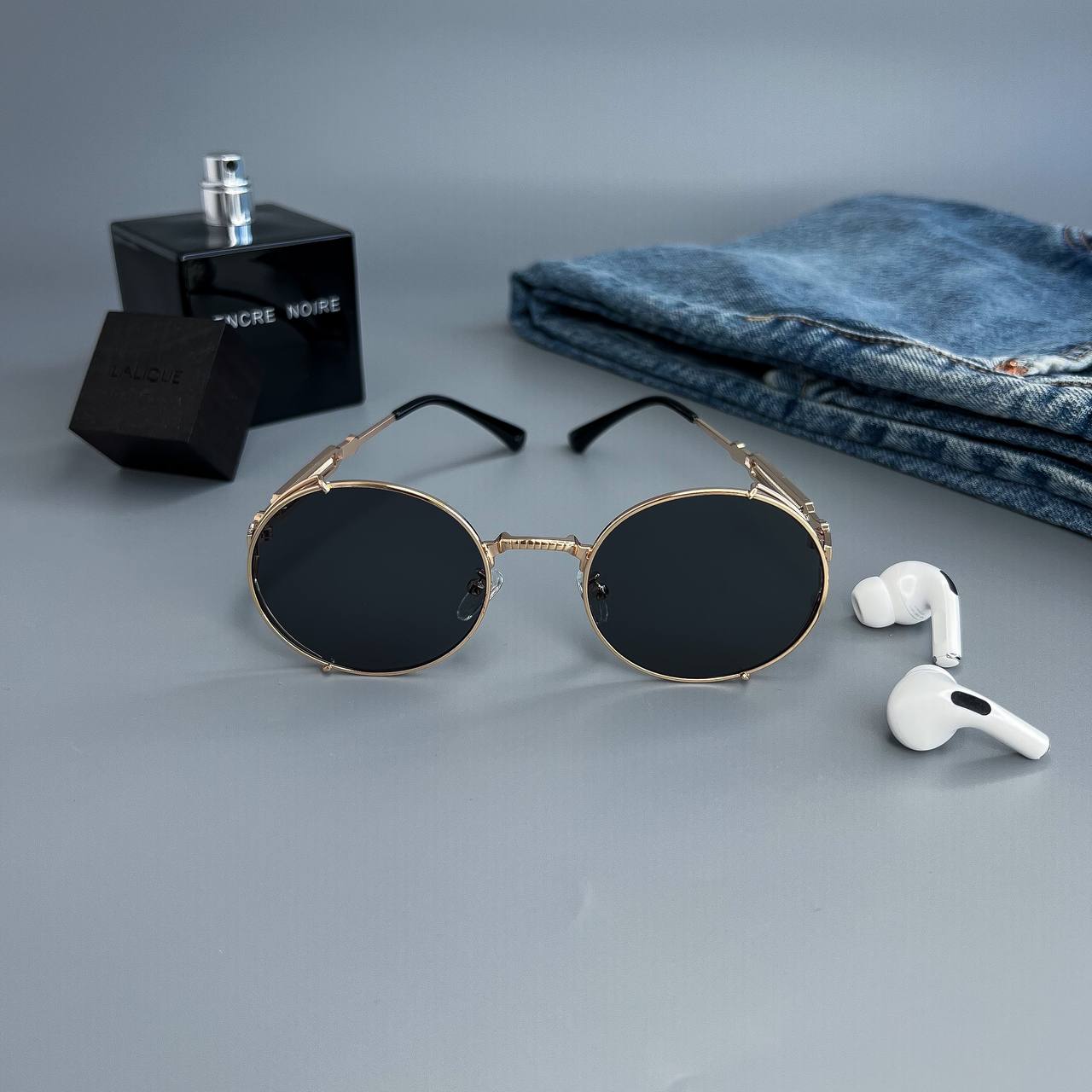 Чоловічі Круглі Овальні Чорні Сонцезахисні Окуляри – з Золотистою Металевою Оправою