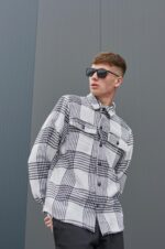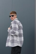 Чоловіча Байкова Сорочка Прямого Крою в Білу Клітку