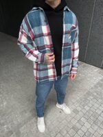 Чоловіча Байкова Синя Сорочка Оверсайз – Вільного Крою у Велику Клітку