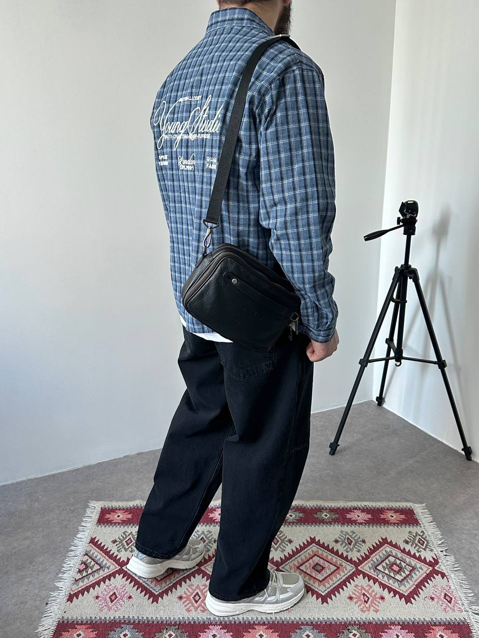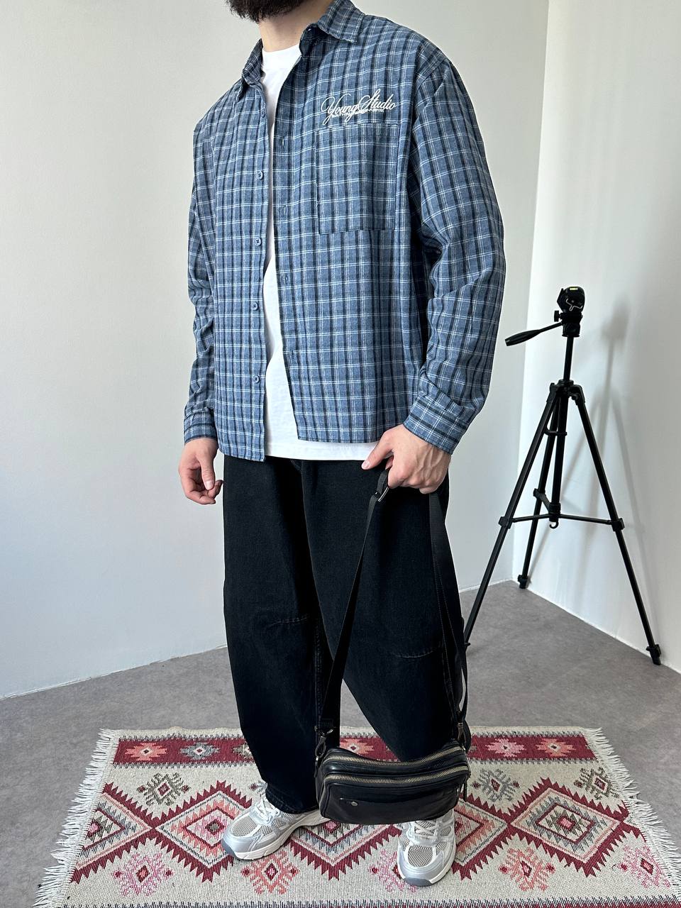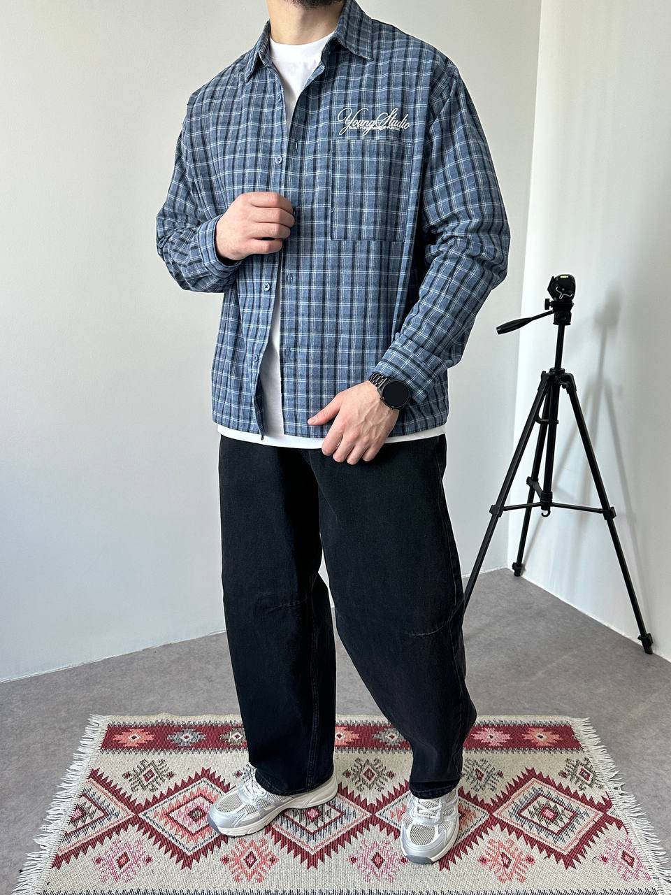 Чоловіча Бавовняна Картата Блакитна Сорочка Варена Оверсайз