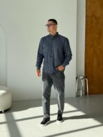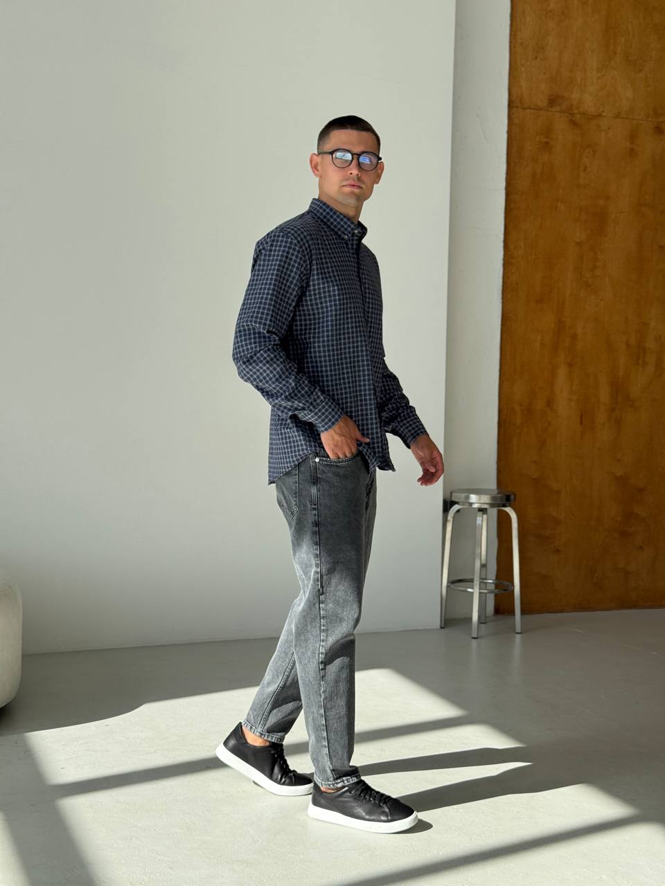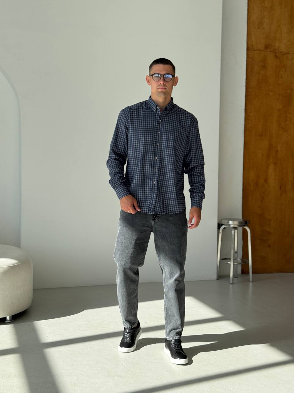 Чоловіча Бавовняна Картата Графітова Сорочка База