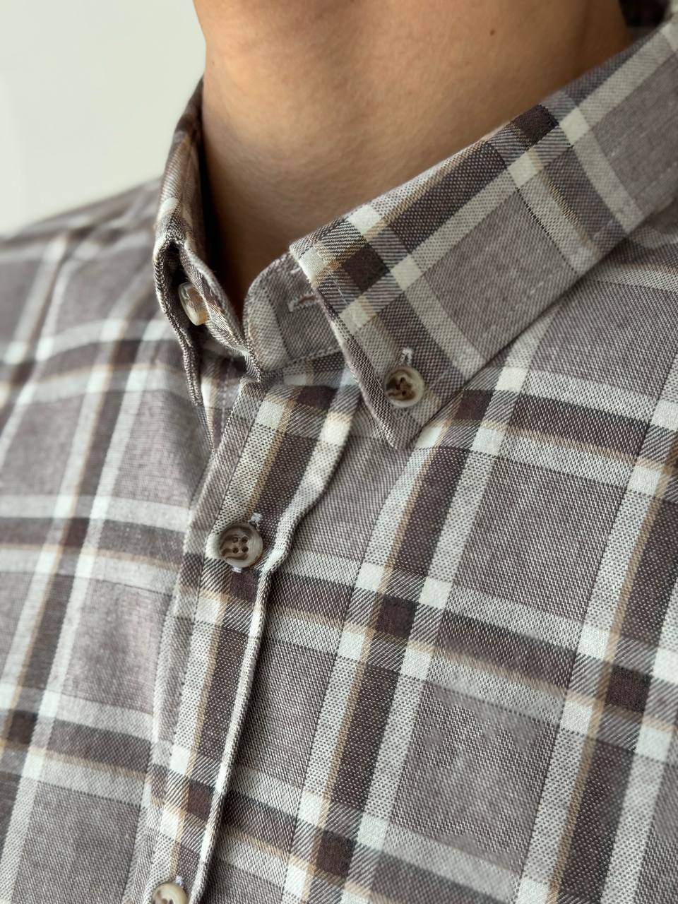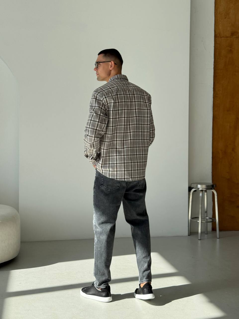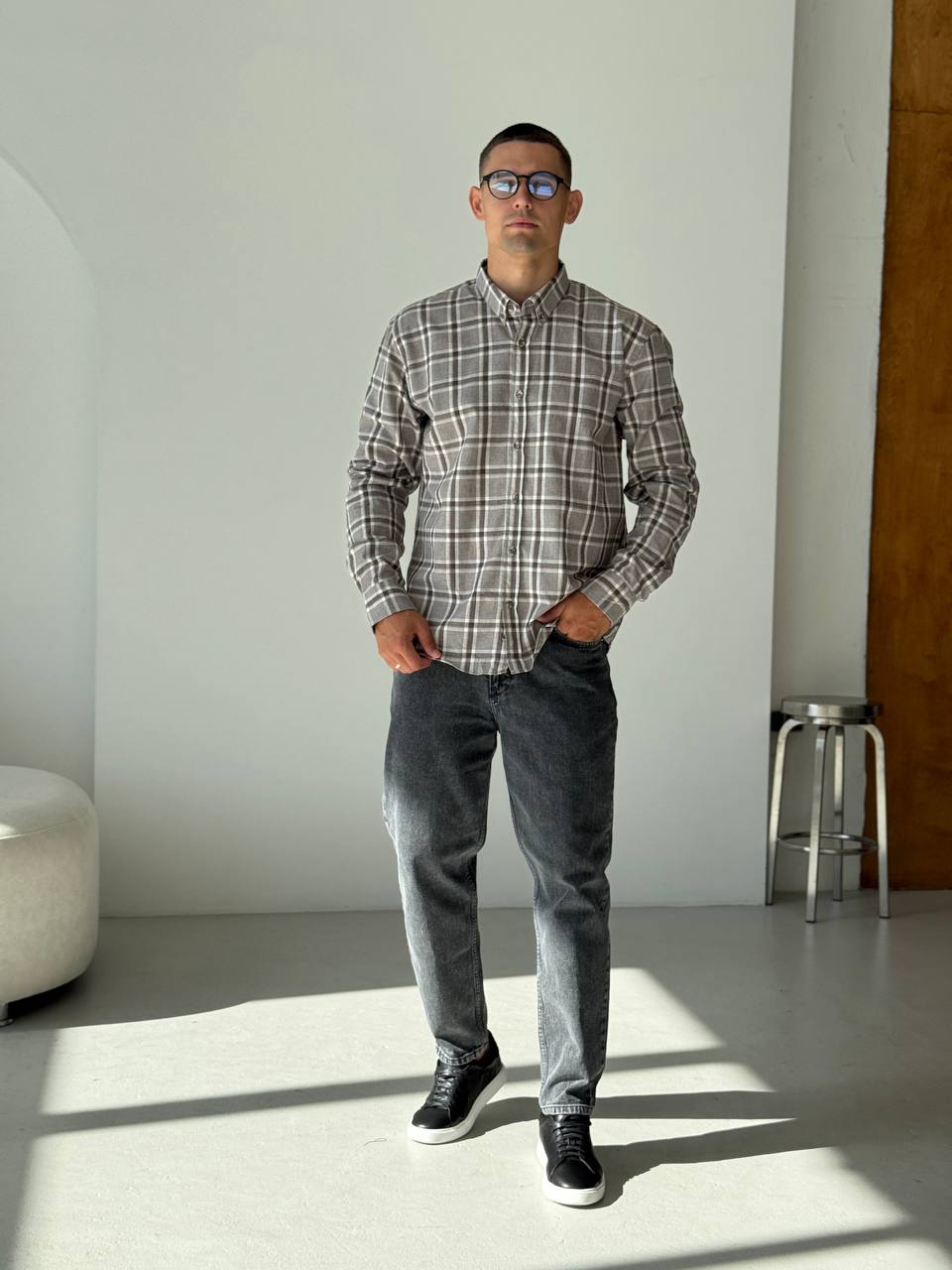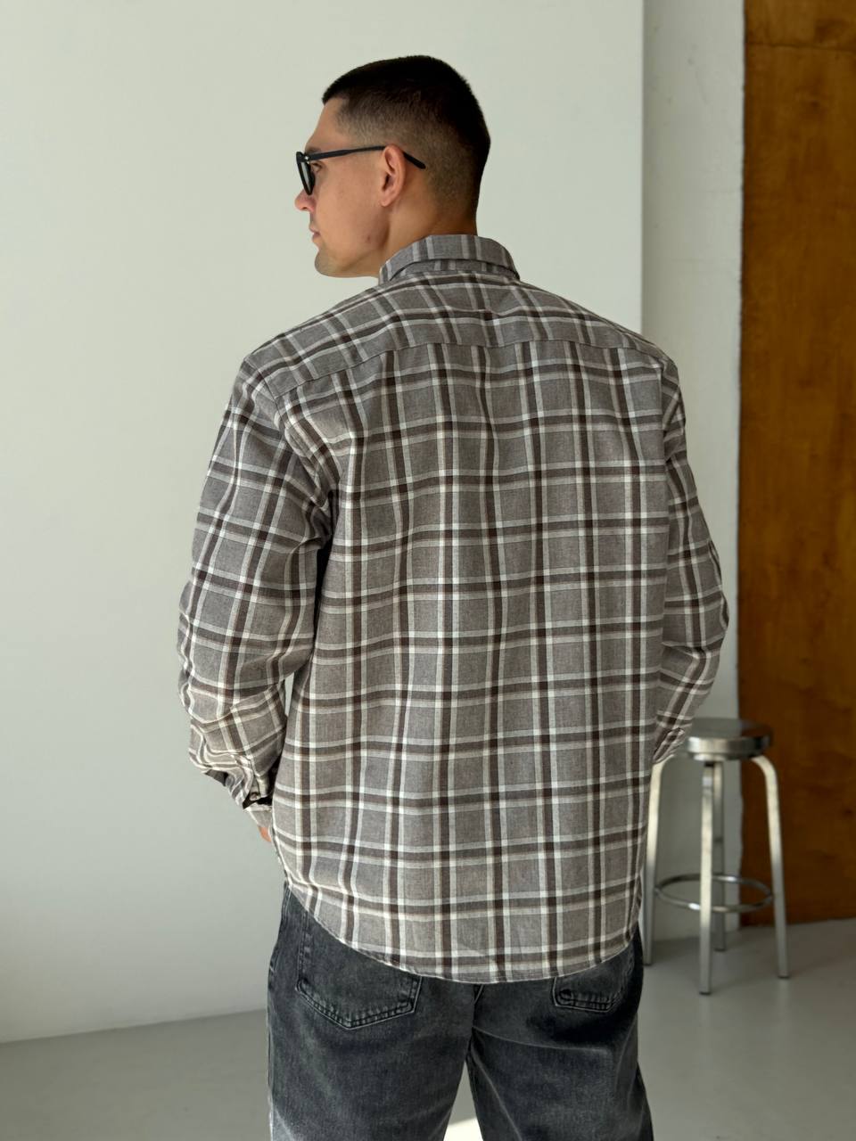 Чоловіча Бавовняна Картата Сіра Сорочка База